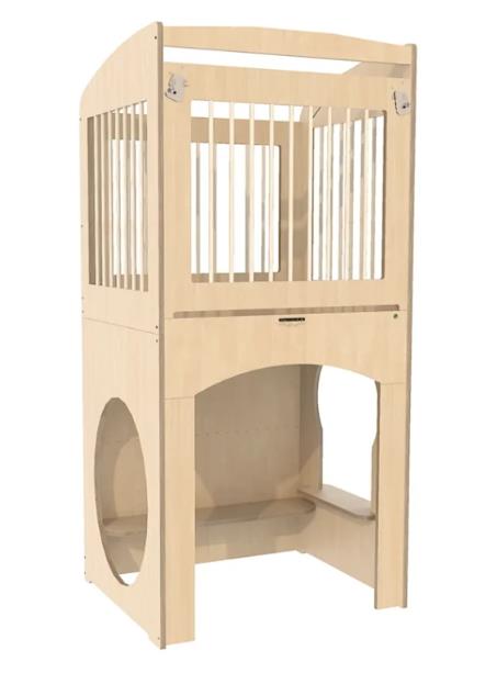 Stevige hoge box uitgevoerd met kantelhek en spijlen.