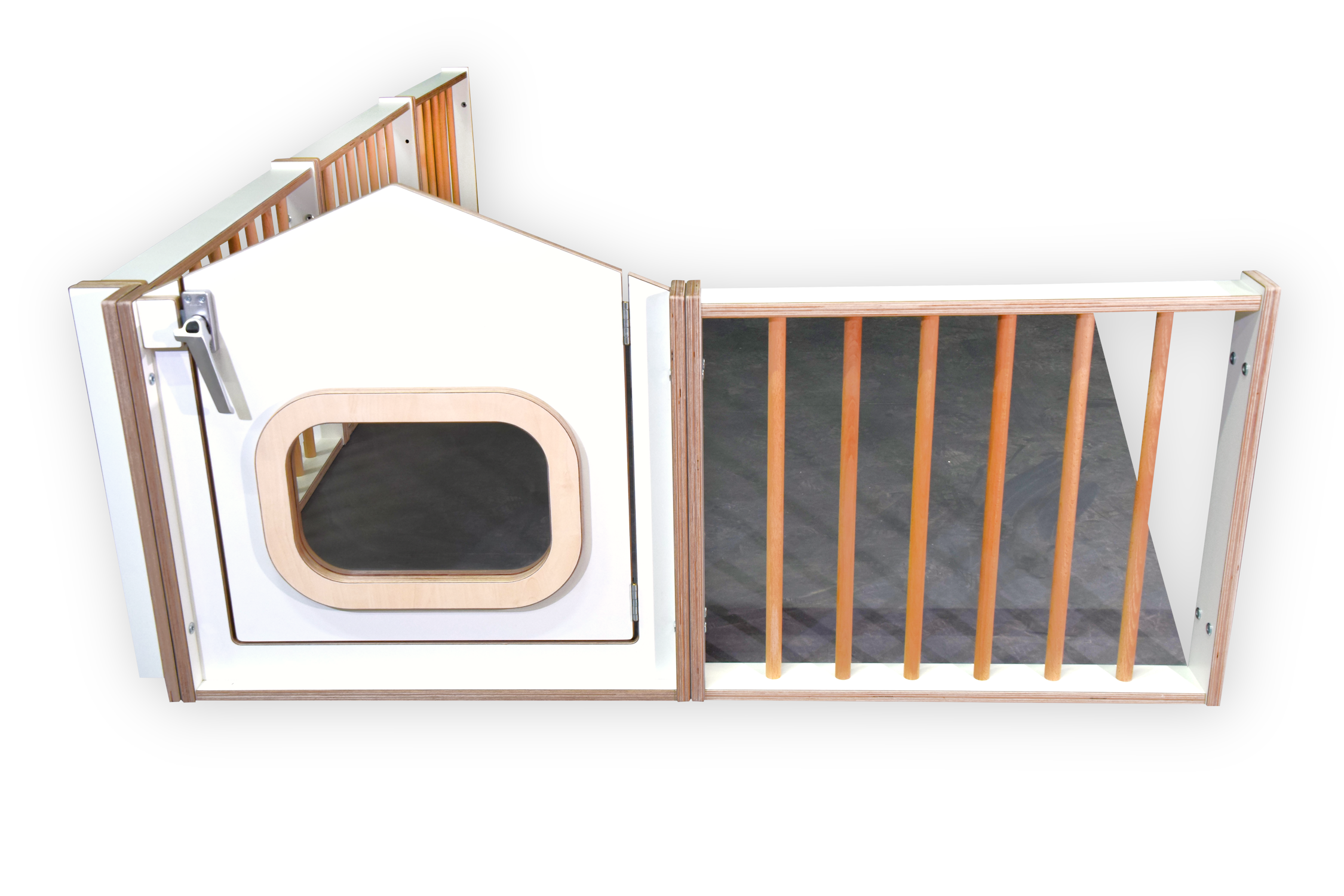 Uitgevoerd in berken multiplex met witte HPL toplaag.