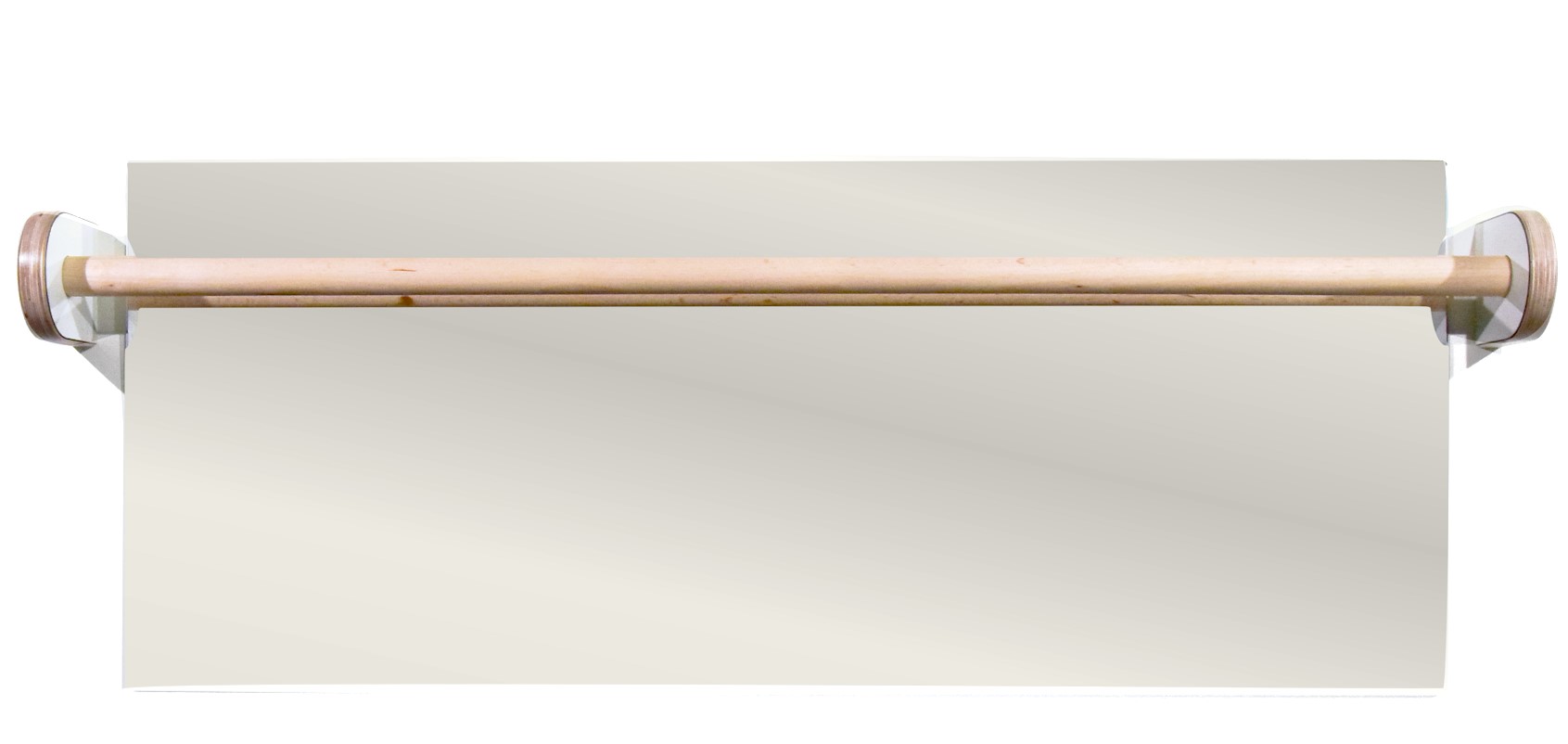 De beugel wordt vastgezet in witte of berken eindstukken voor muurbevestiging.