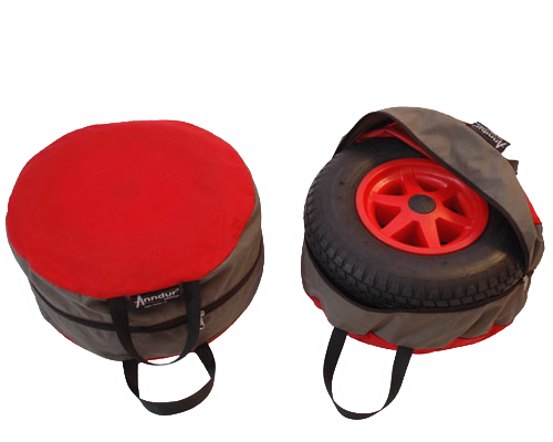 De wielen van de Walking Wagon zijn in de wieltassen gemakkelijk mee te nemen.