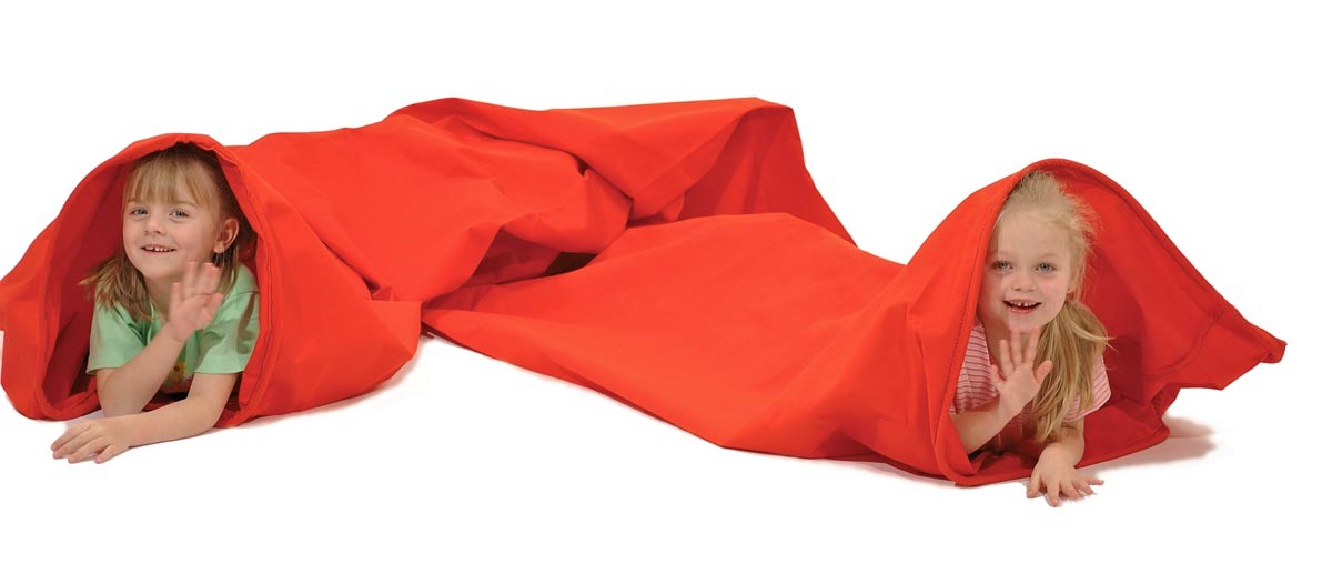 De tunnel van canvas biedt een heel bijzonder kruip- en kruipplezier.
