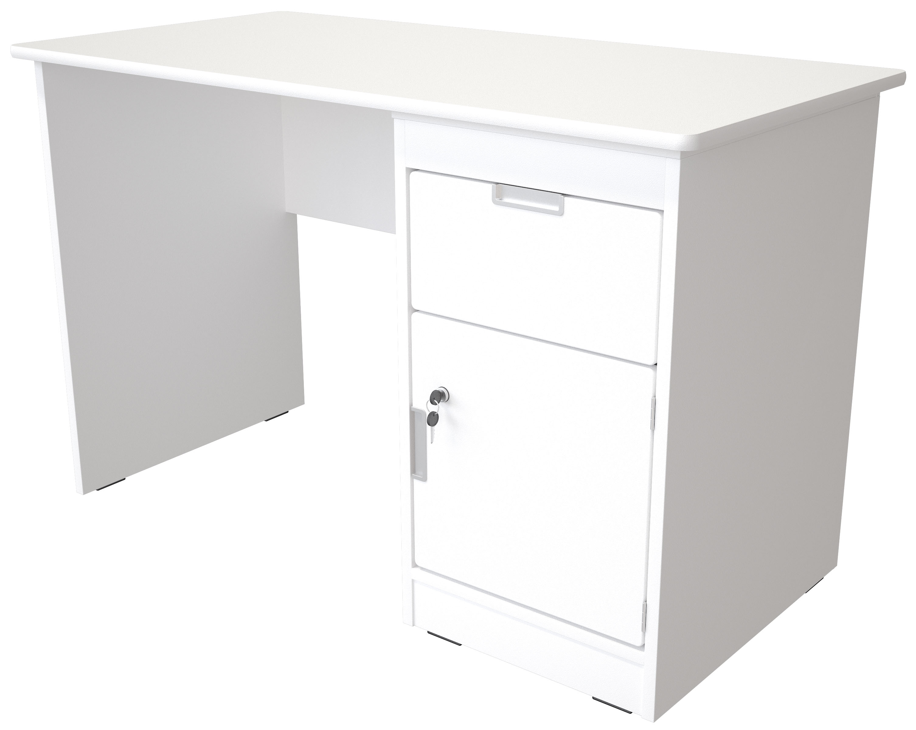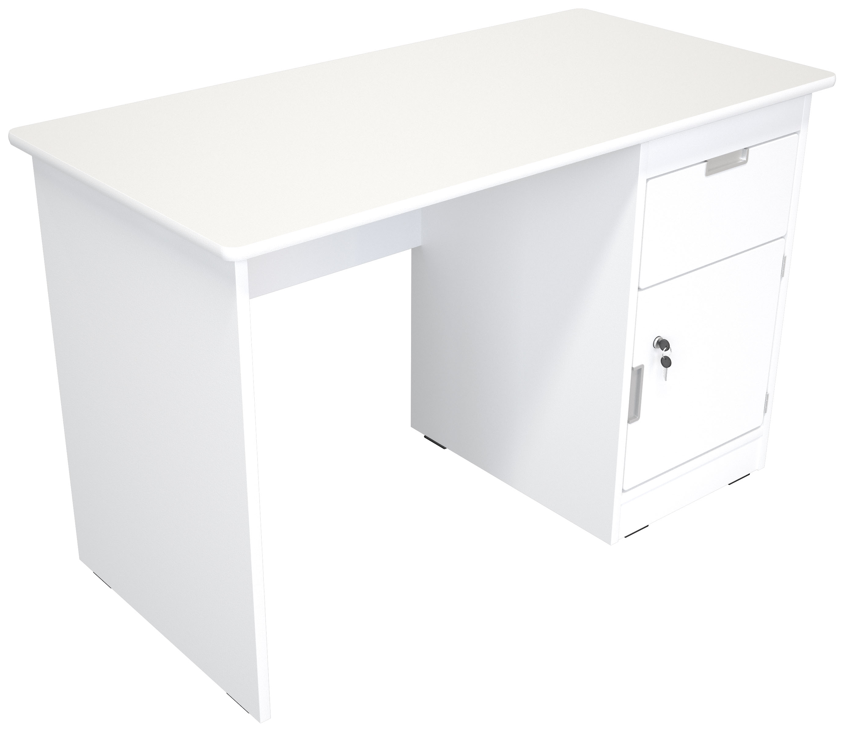 Flexi bureau voorzien van een afsluitbare kast en een lade.