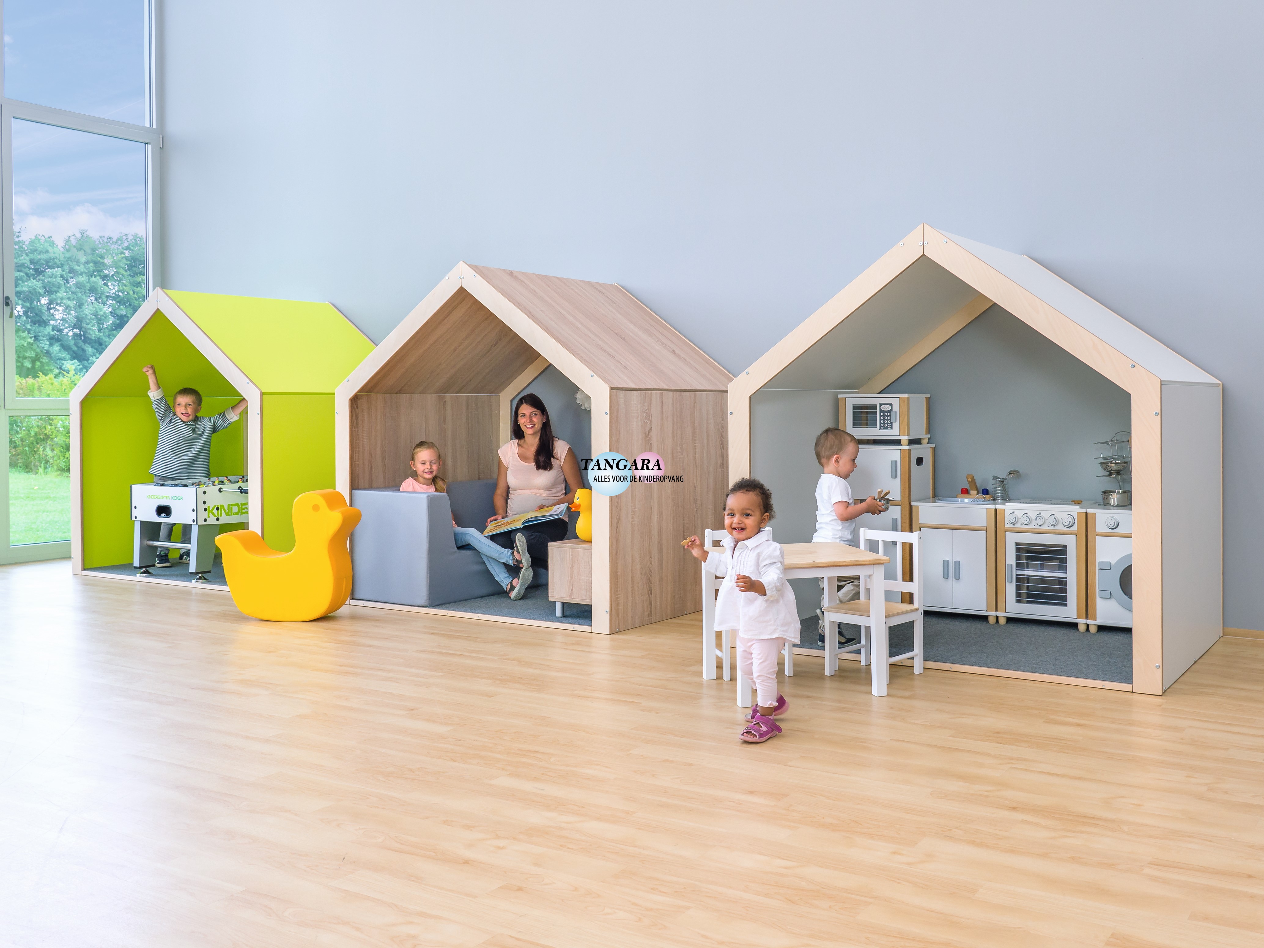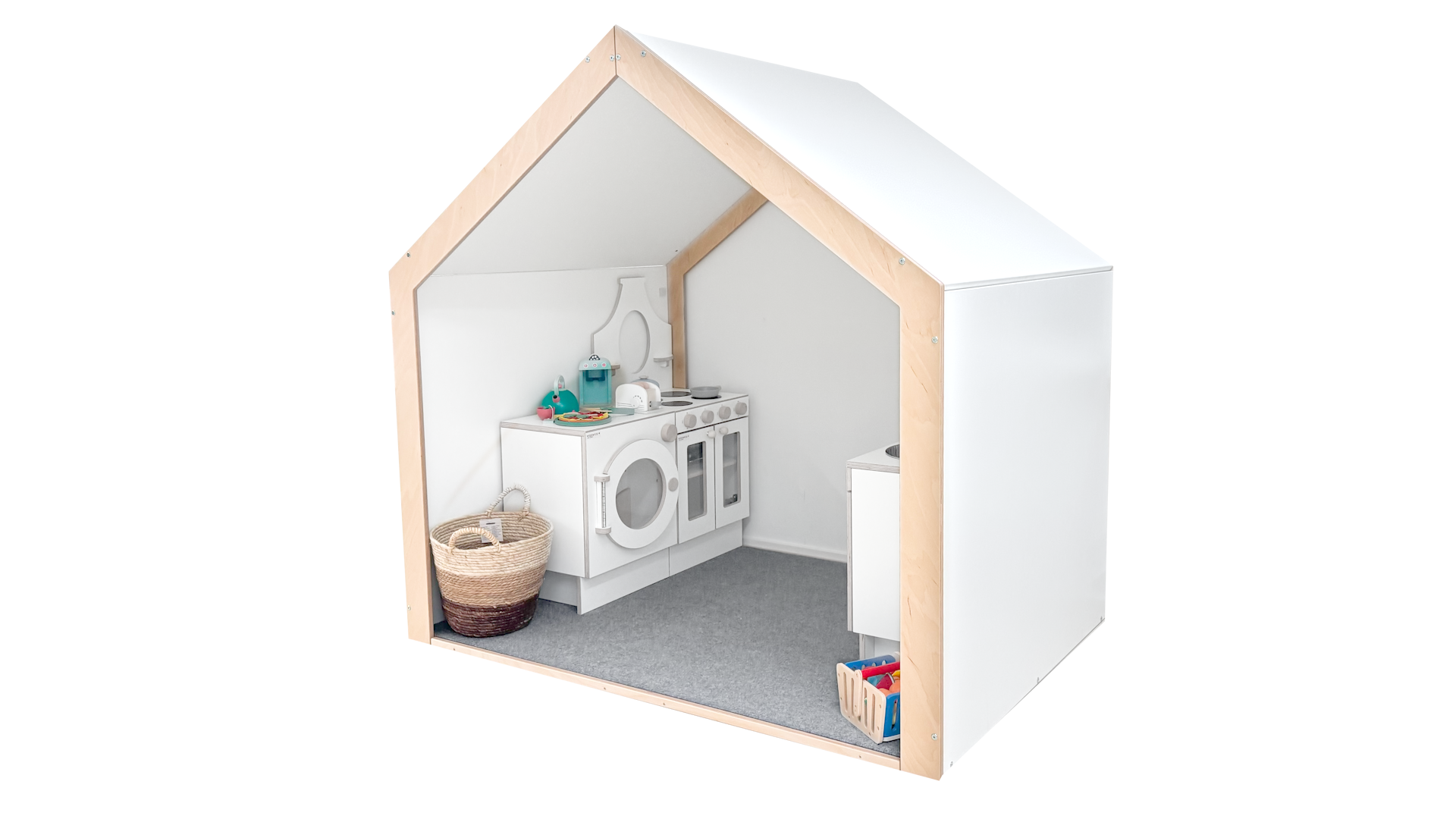 EduCasa speelhuis XXL geeft een gevoel van thuis. Zet willekeurig een ruimte op, een bouwhoek, een poppenhuis, een muziekkamer of een schilderhuis, Het speelhuisje is verkrijgbaar in verschillende kleuren. Zelfmontage. |