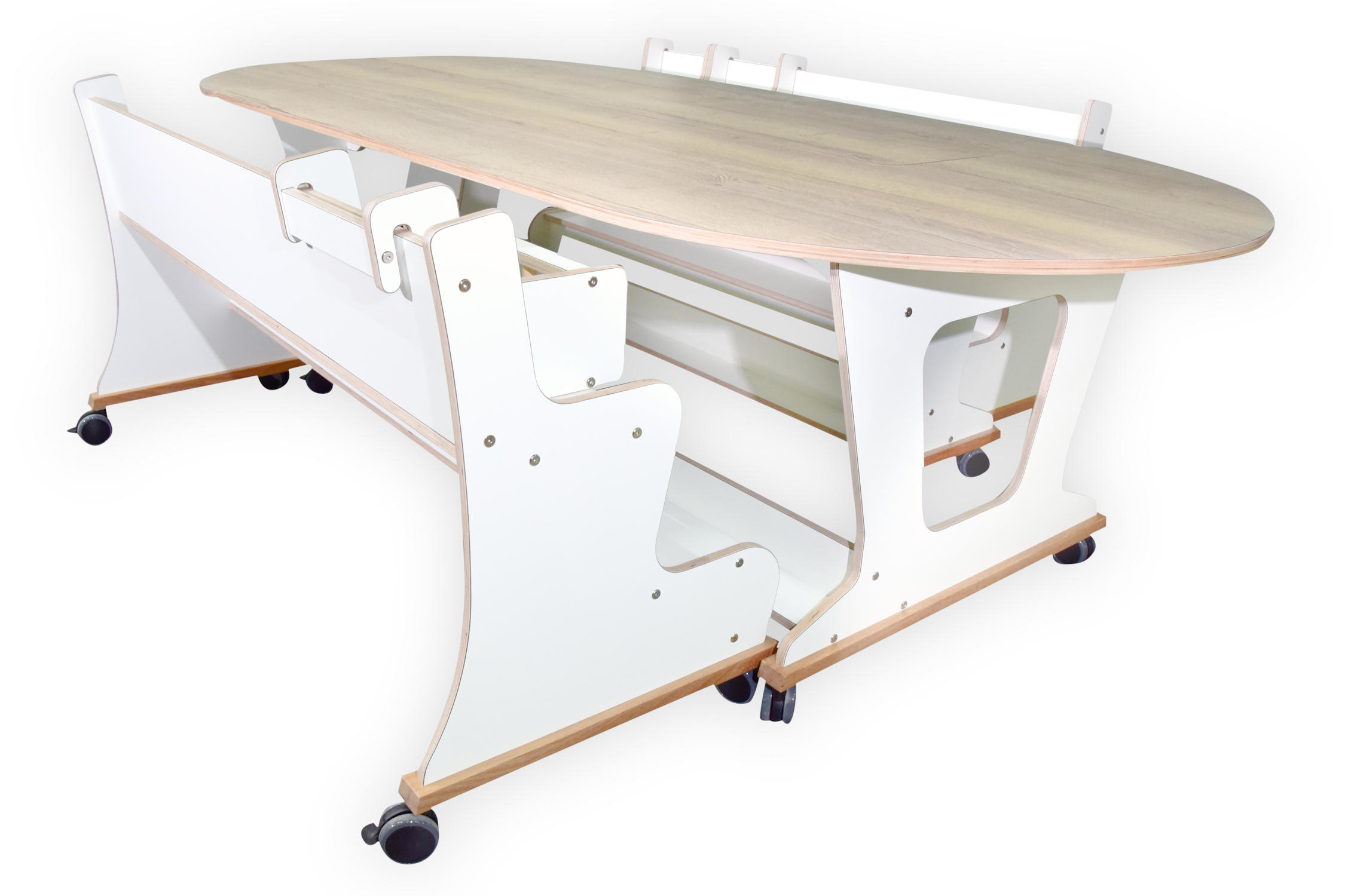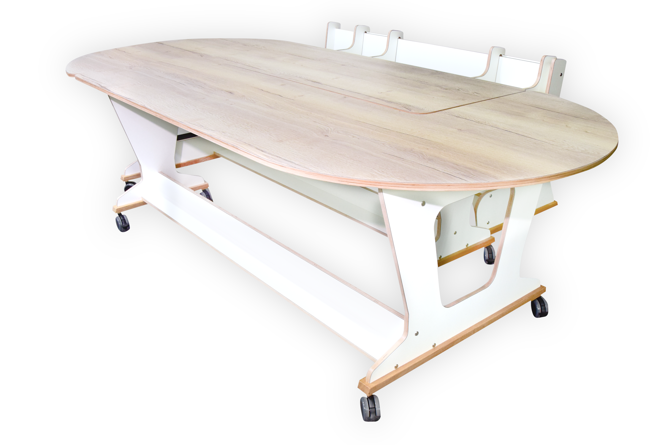 De tafel is uitvoerbaar in de kleur wit, volledig houtdecor en wit met het blad in een houtdecor naar keuze.