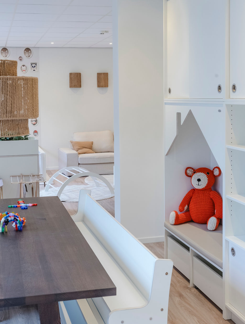Voor kinderopvangorganisatie Little Guests, ontwierp ik een ruimte waarin kinderen vrij kunnen bewegen, het team overzicht houdt en elk meubel past binnen de pedagogische visie.