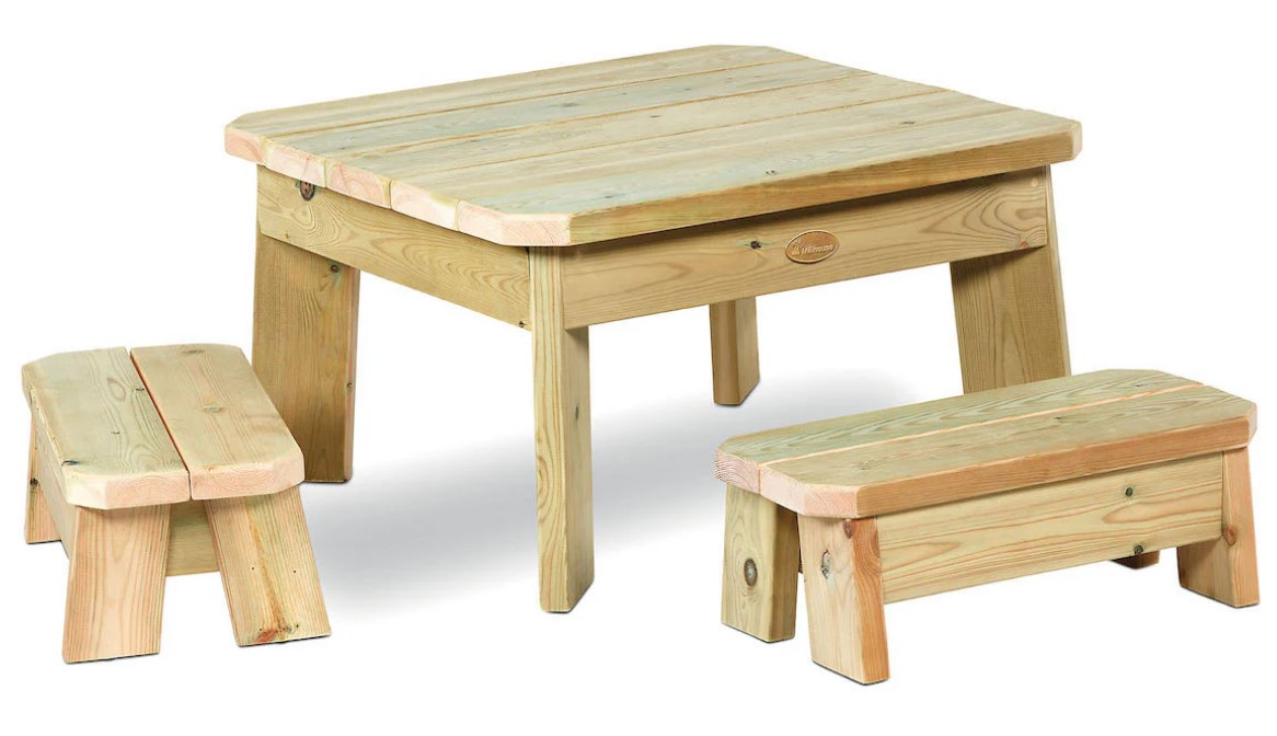 Set bestaat uit: 1 vierkante tafel en 2 banken.