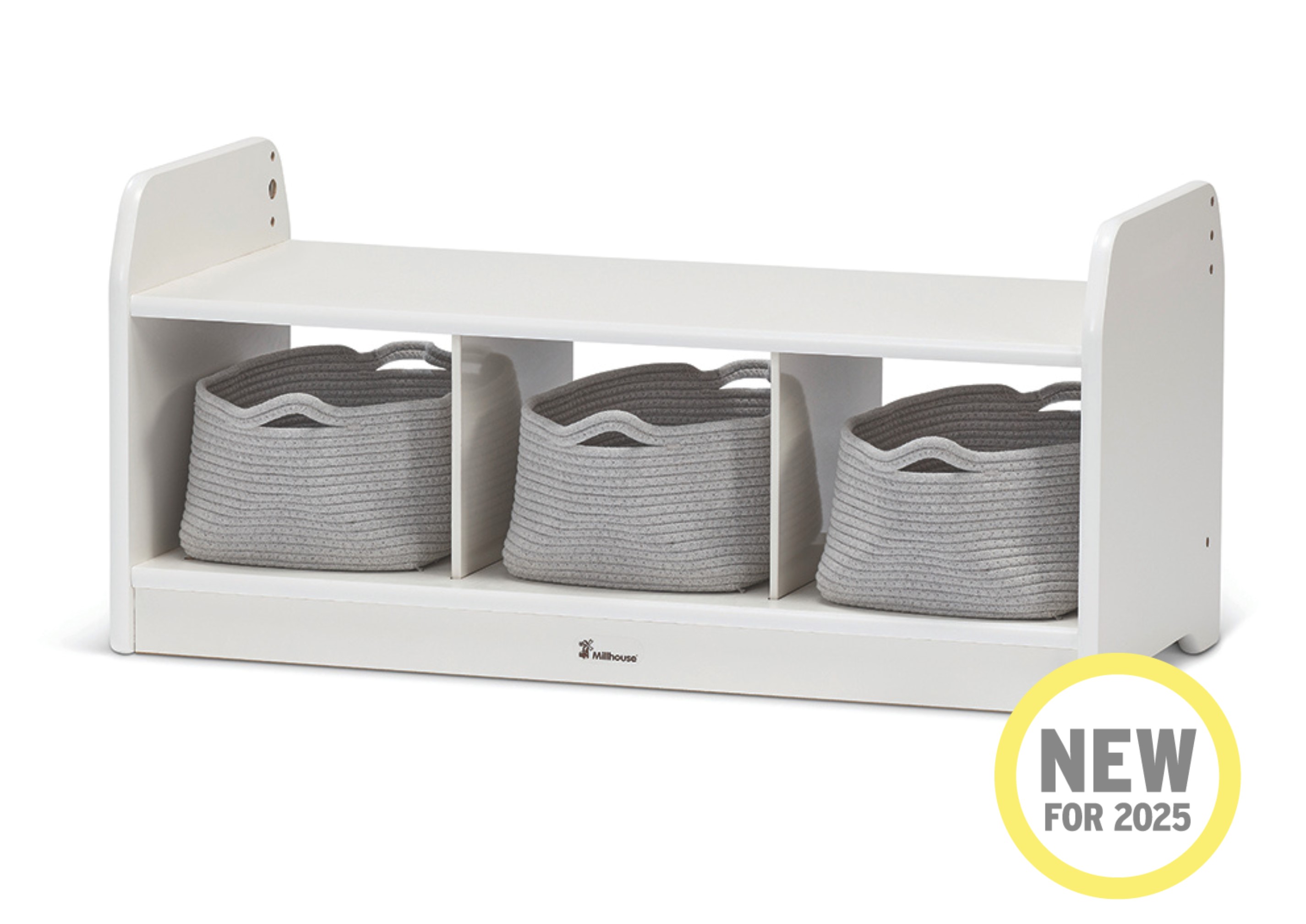 met 3 ondiepe opbergmanden van touw (lichtgrijs).