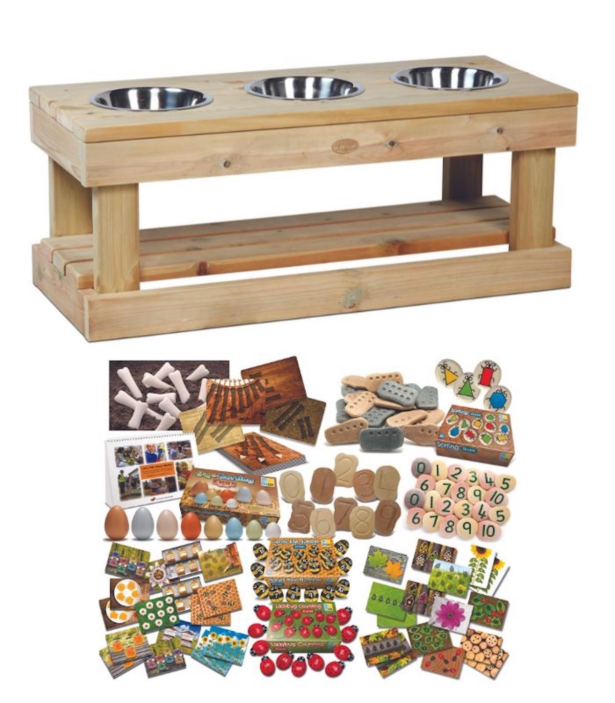 met deze vrijstaande sensorische tafel met 3 uitneembare kommen