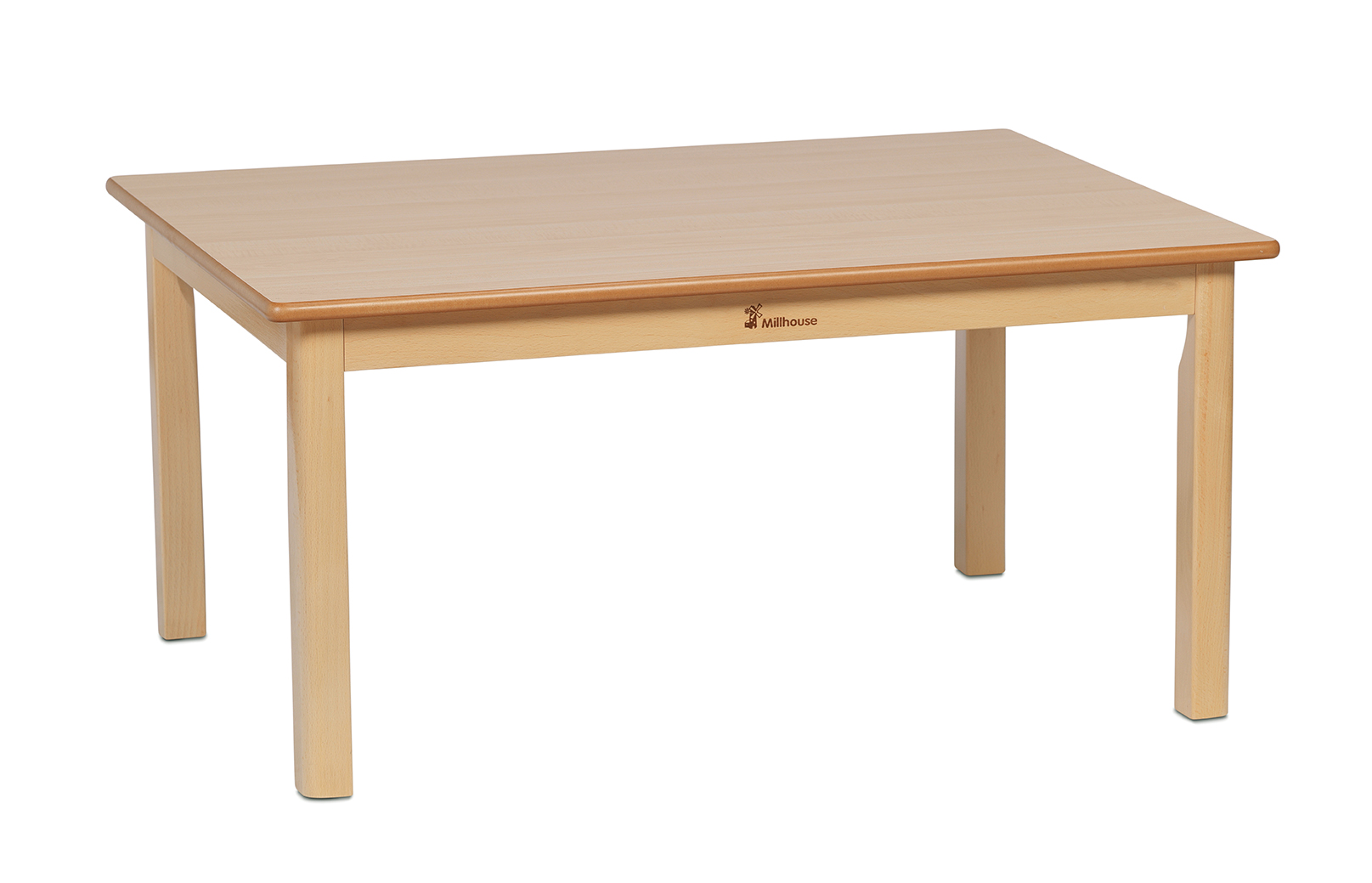 Massief beukenhouten frame met een makkelijk schoon te maken esdoorn melamine bovenblad.