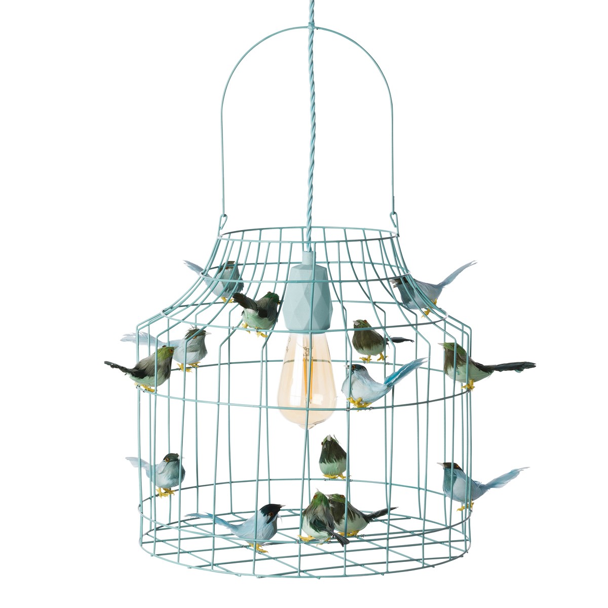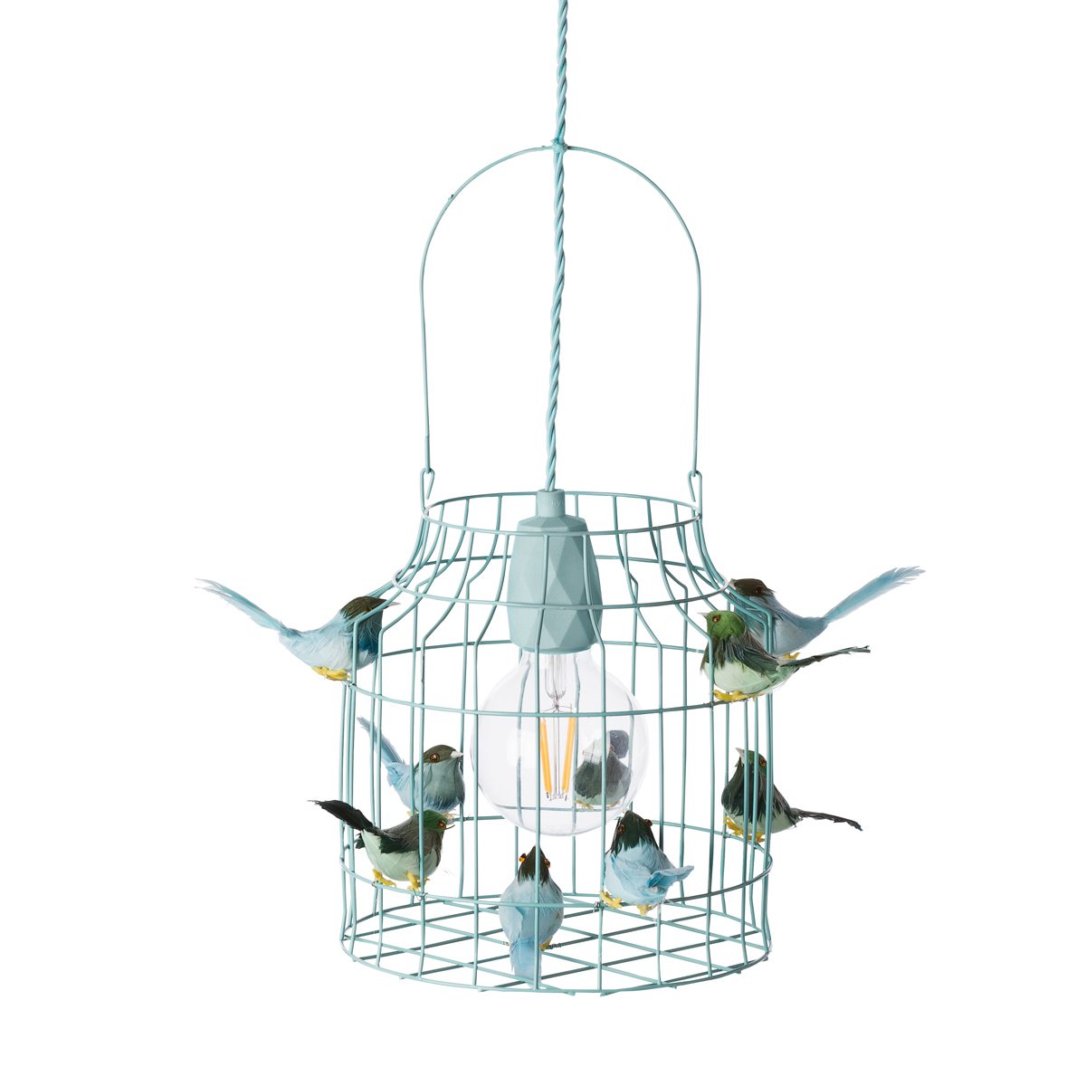 Dutch Dilight Hanglamp van lichtblauw ijzerdraad met vogeltjes. Net echt!