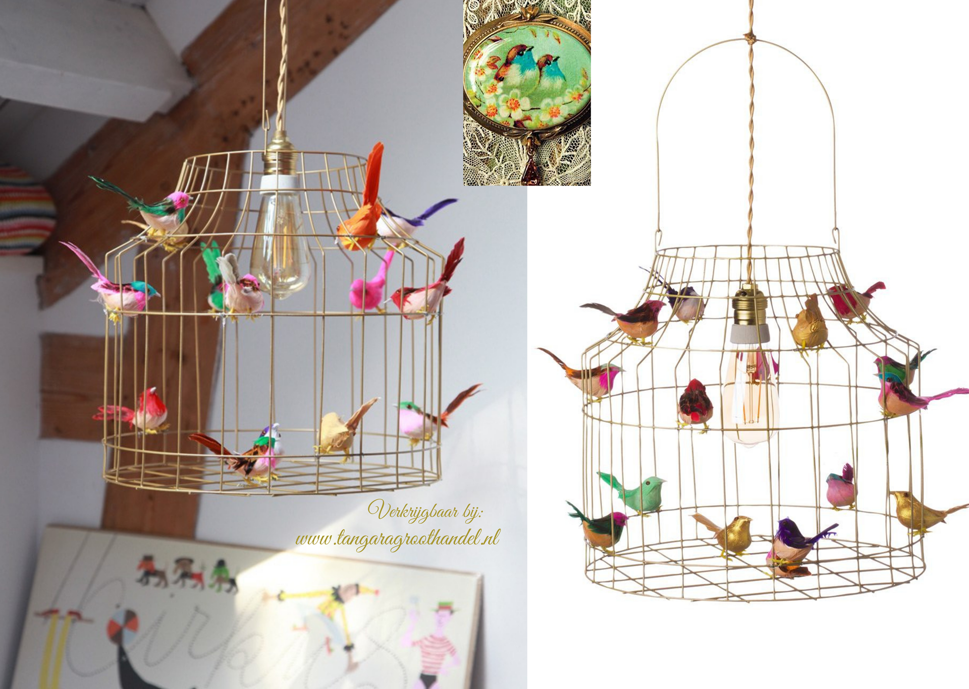 Inclusief lichtblauwe snoer, wit plafondkapje, lichtblauwe fitting, 9 lichtblauwe met groentint vogeltjes