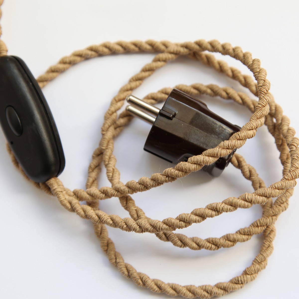 gloeilamp en een lang snoer dat op scheepstouw lijkt en nauwelijks opvalt.
