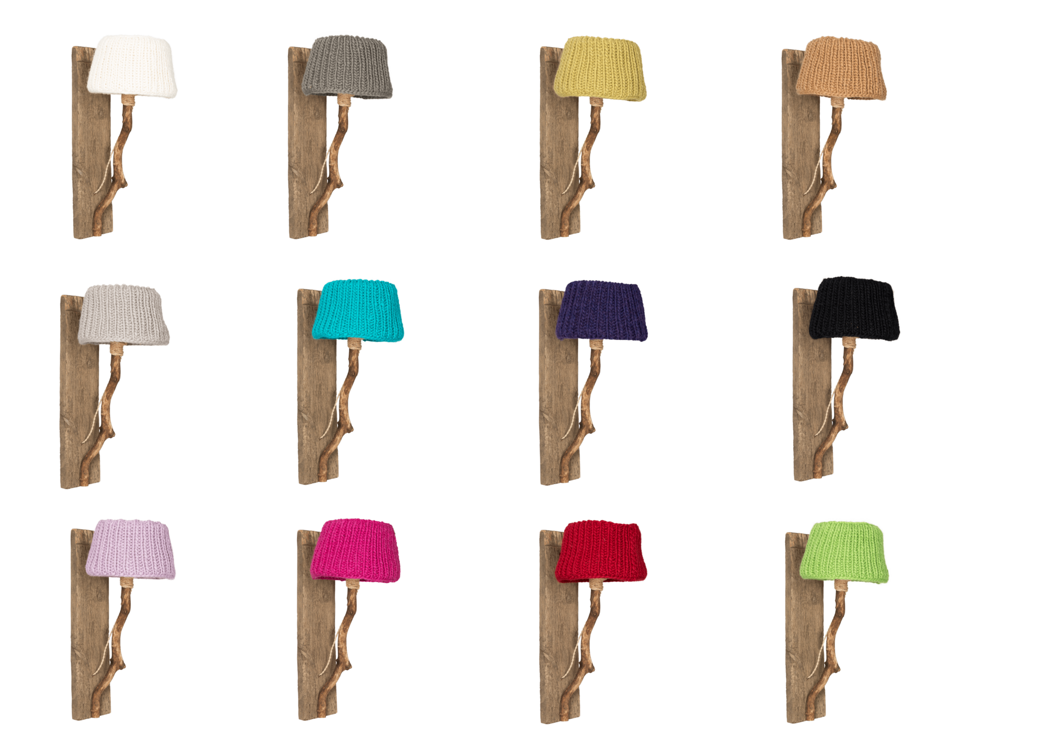 Op aanvraag met de hand geproduceerd en diverse kleuren gebreide kappen.