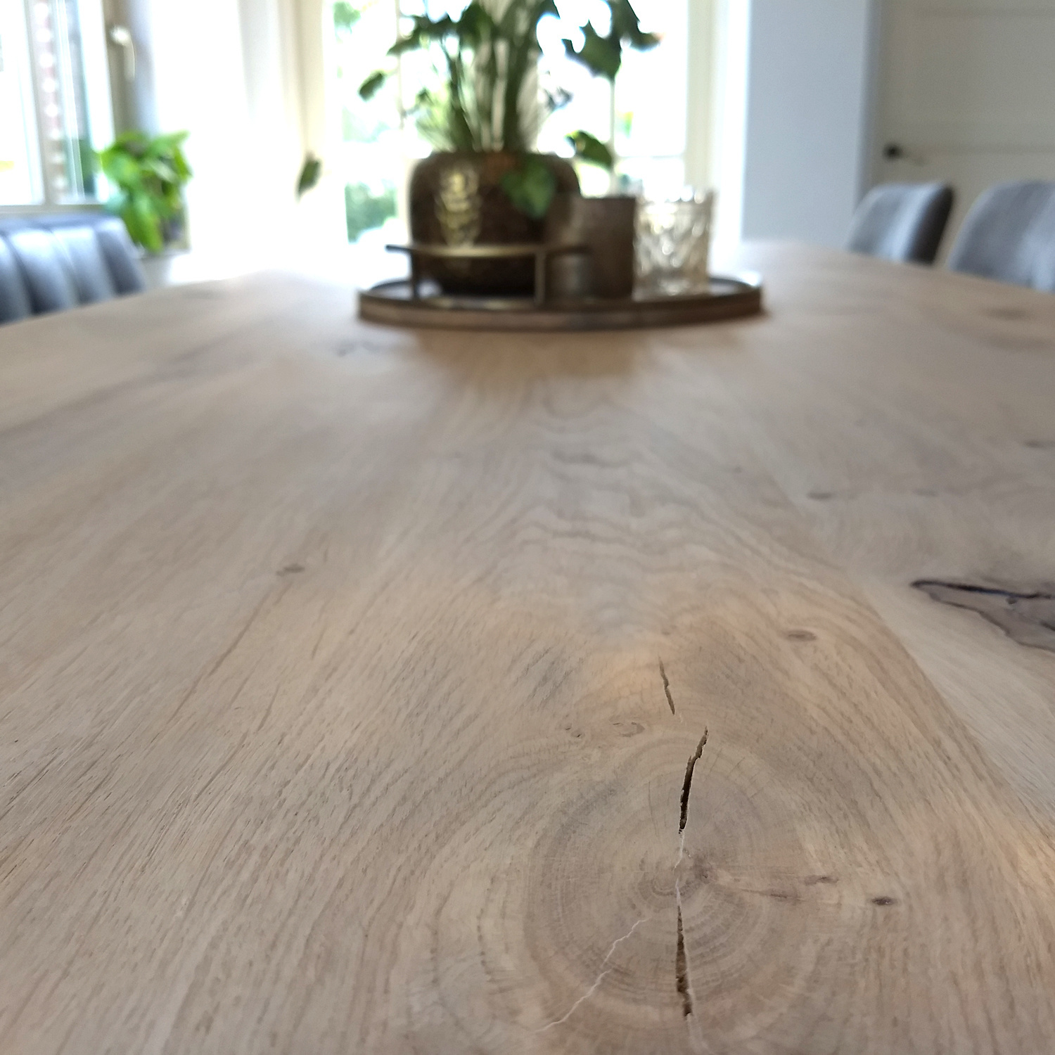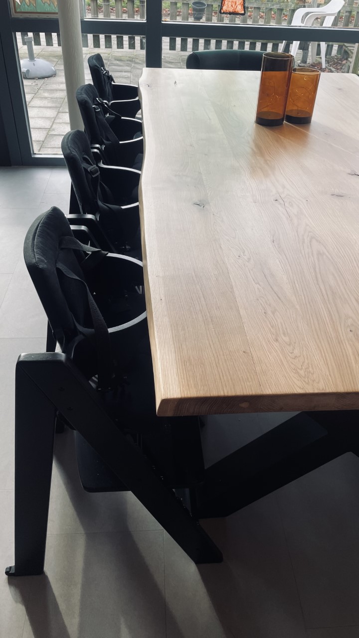 Tangara Eiken boomtafel met zwarte stalen X poten5