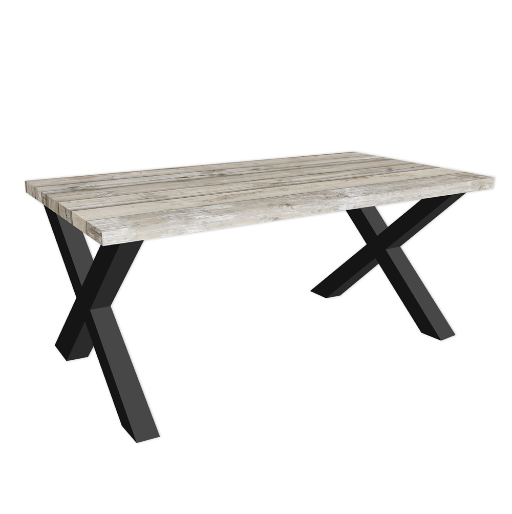 Tangara Eiken boomtafel met zwarte stalen X poten1
