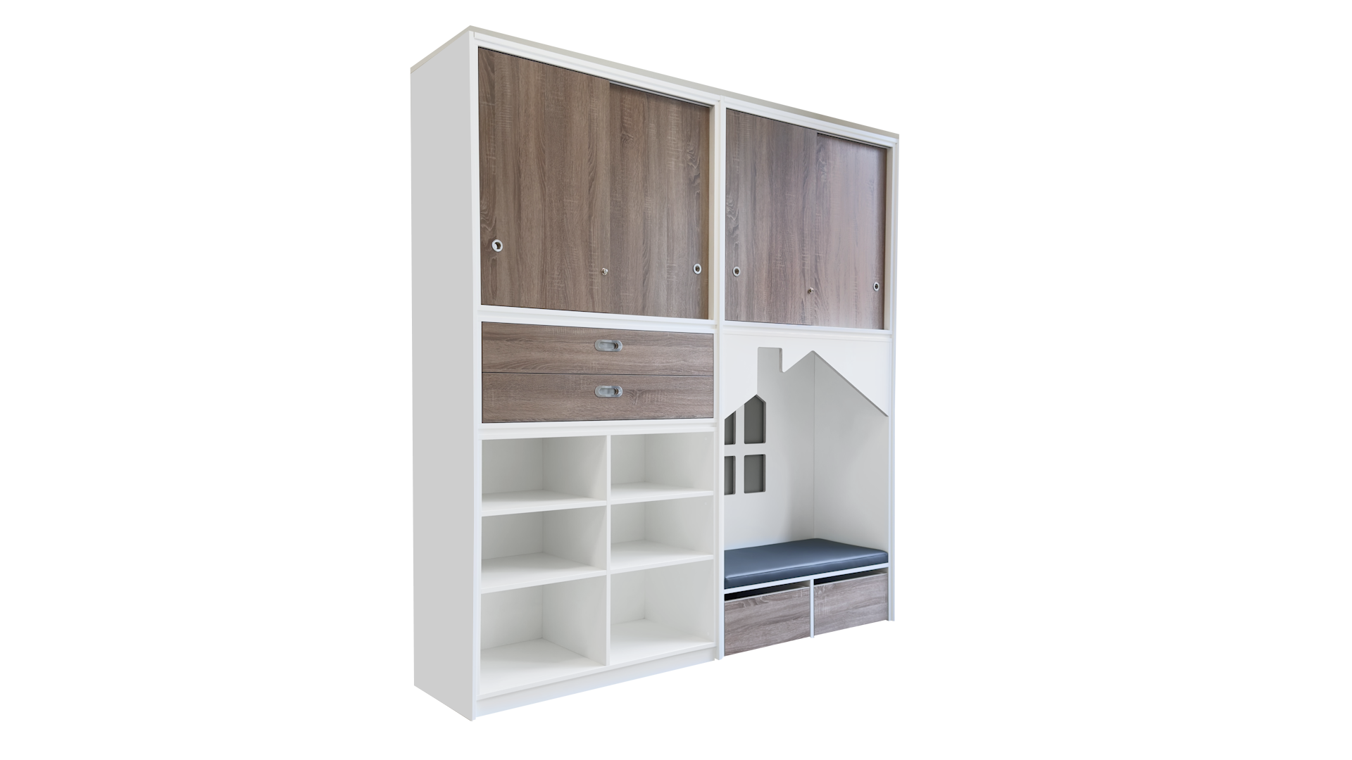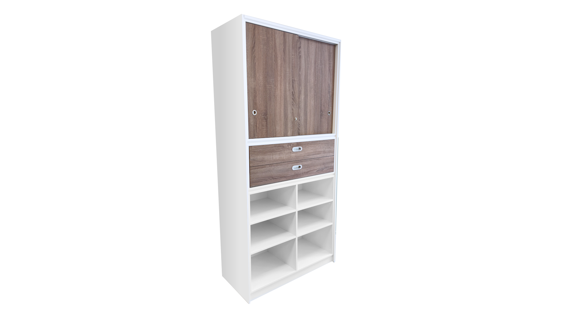 De laden en schuifdeuren zijn leverbaar in een decor naar keuze.