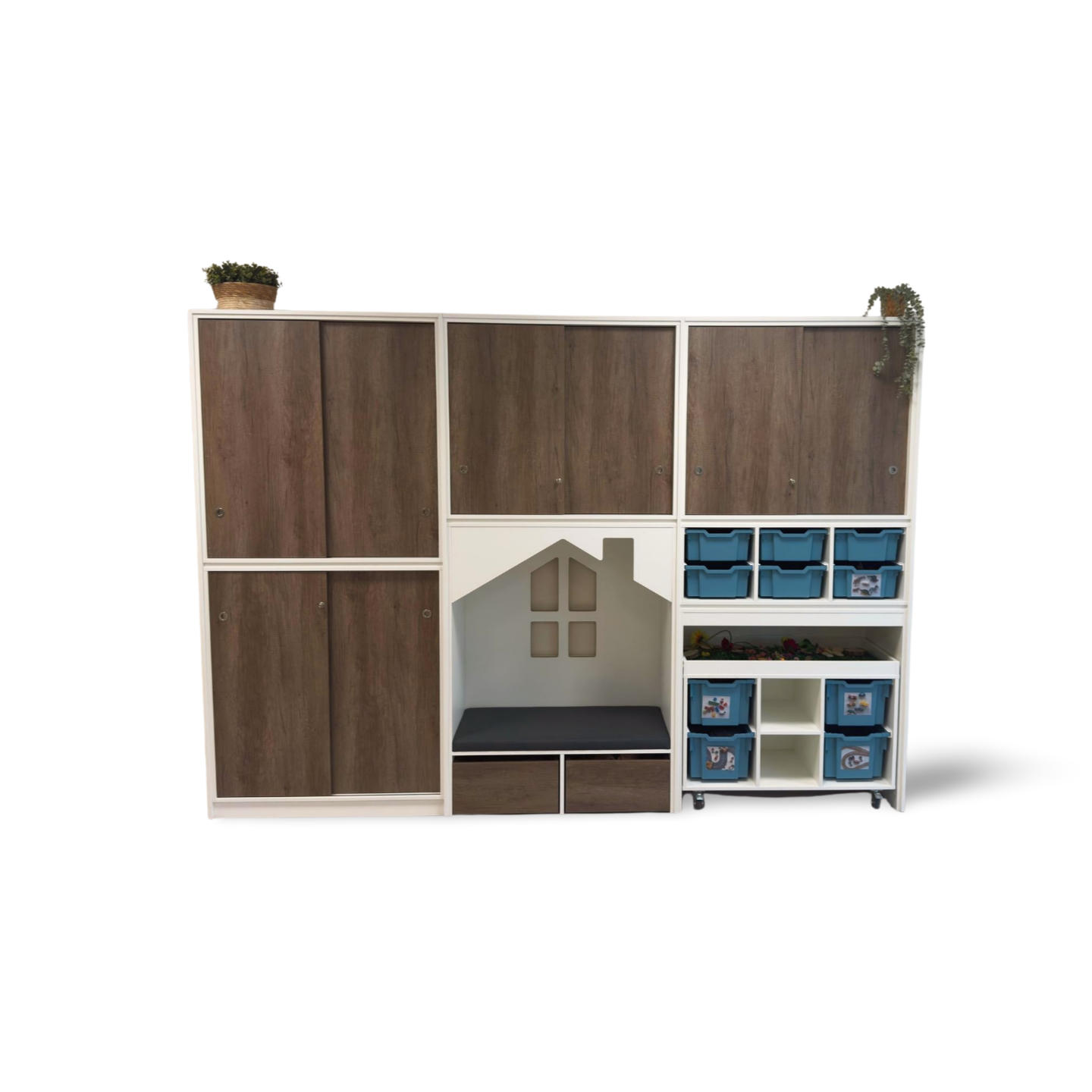 De hoge casten kunnen worden gecombineerd tot een grote castenwand.