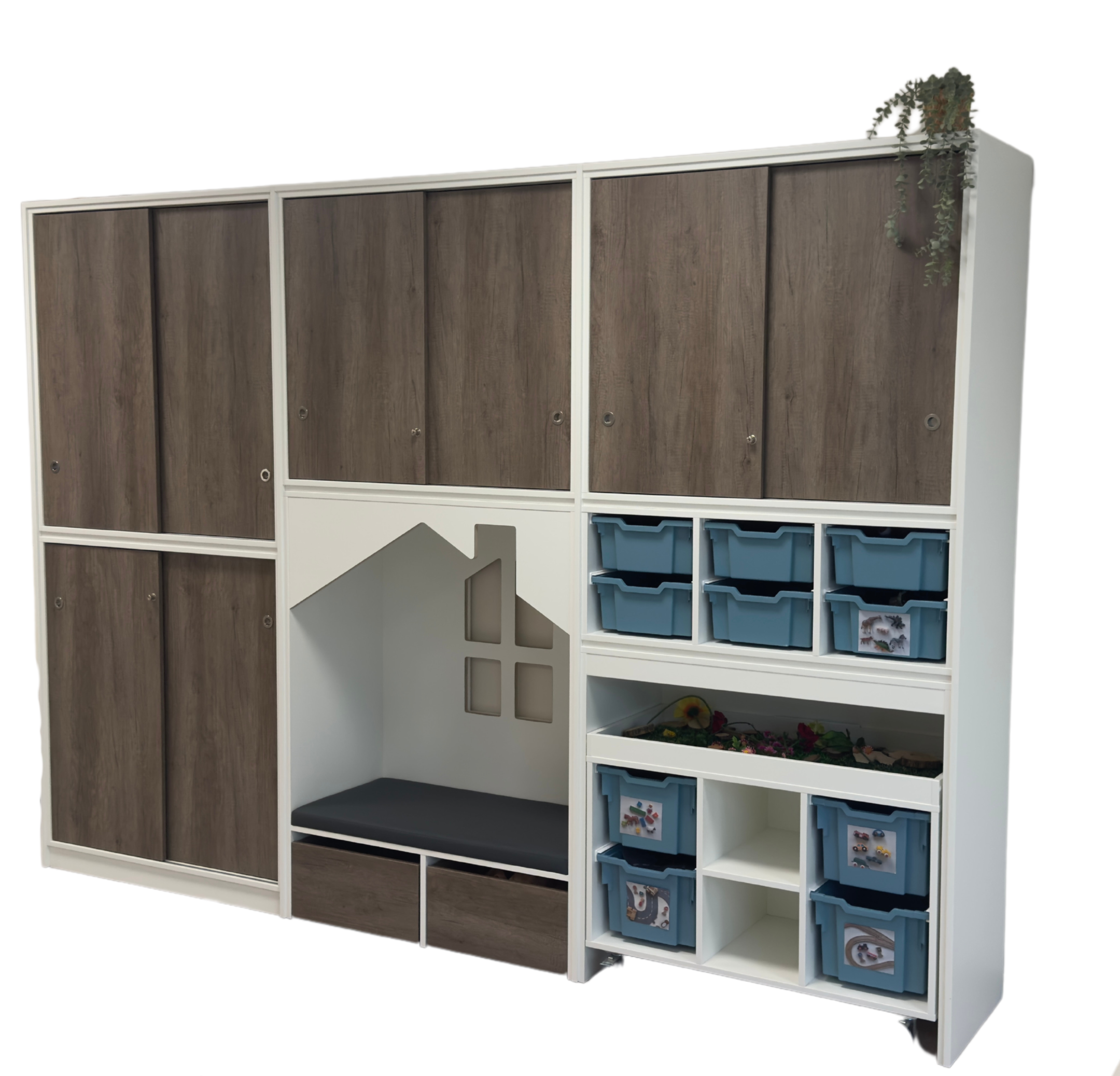 De schuifdeuren zijn leverbaar in een houtdecor naar keuze.