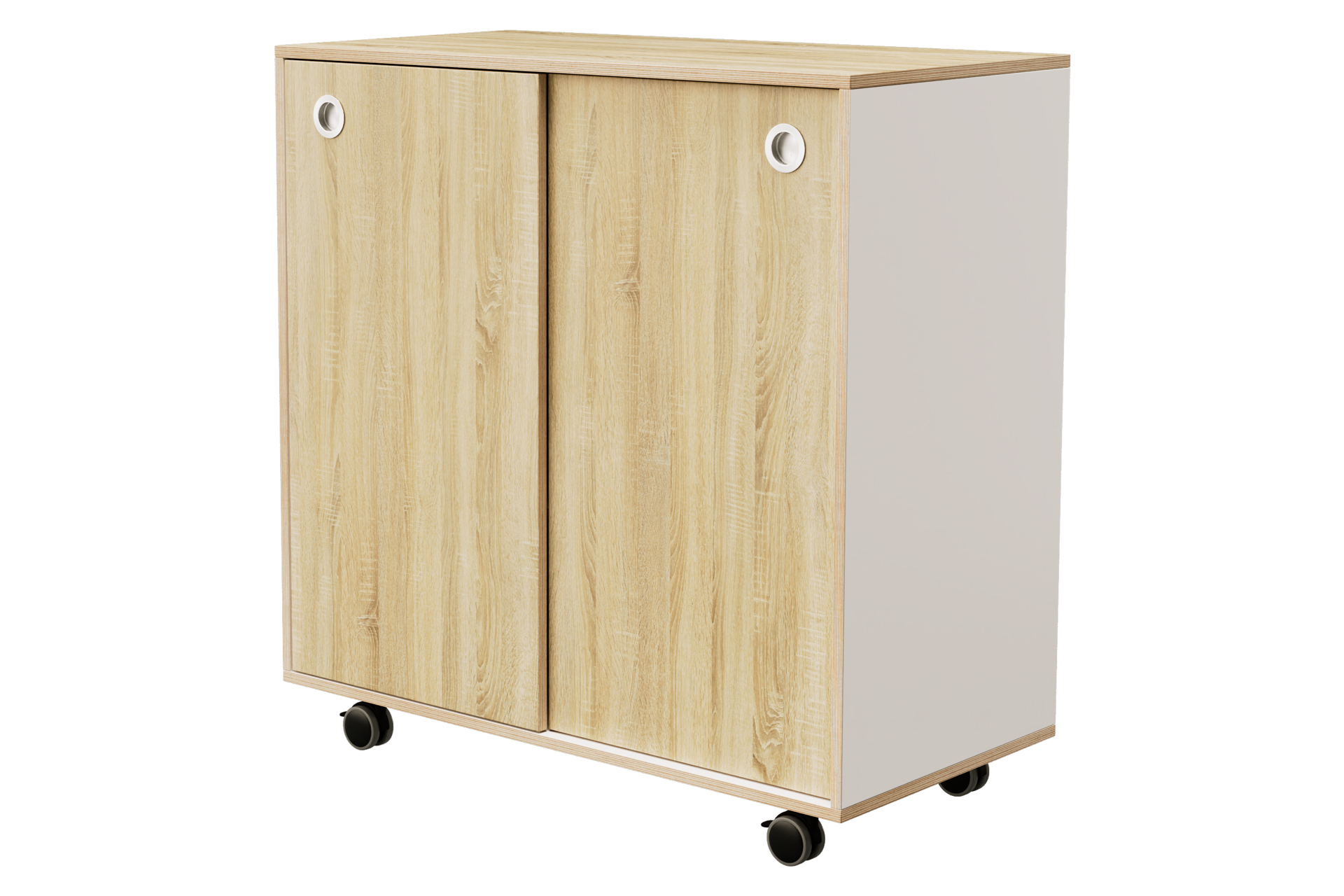 Het bovenblad en de schuifdeuren zijn leverbaar in een houtdecor naar keuze.