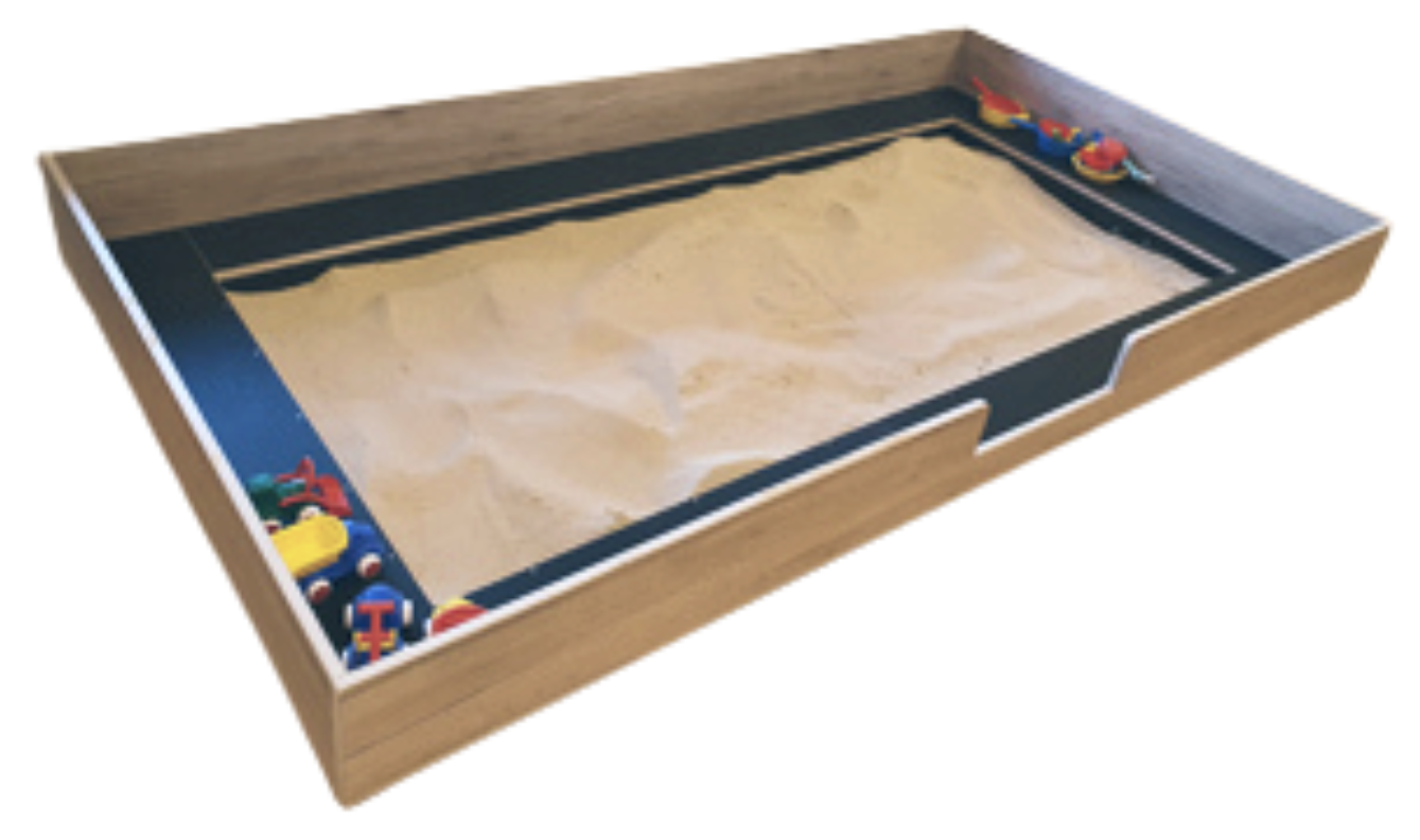 De zandbak is leverbaar in een afmeting en houtdecor passend bij de groepsruimte.