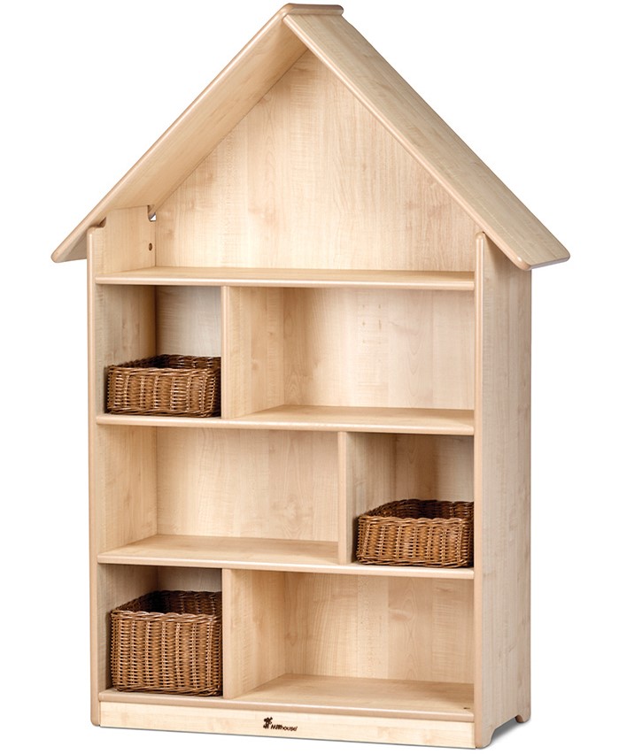 Ons fraai vormgegeven huisvormige kast biedt voldoende ruimte voor boeken, decoratie of opslag.