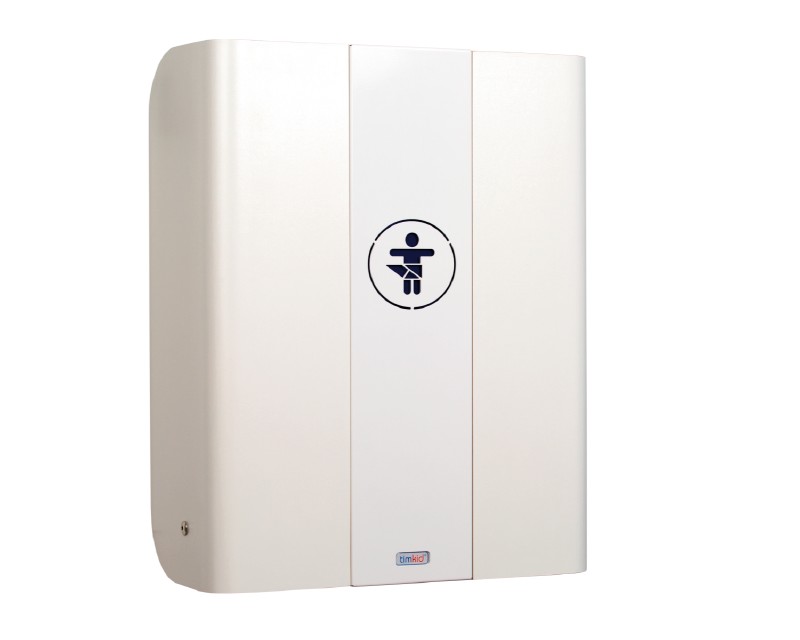 Opklapbare verzorgingstafel die met 1 hand te bedienen is.