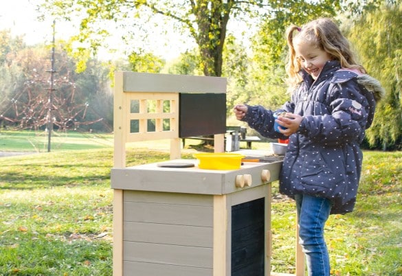 deze buitenkeuken biedt volop ruimte voor de creativiteit van de kleine sterrenchefs.