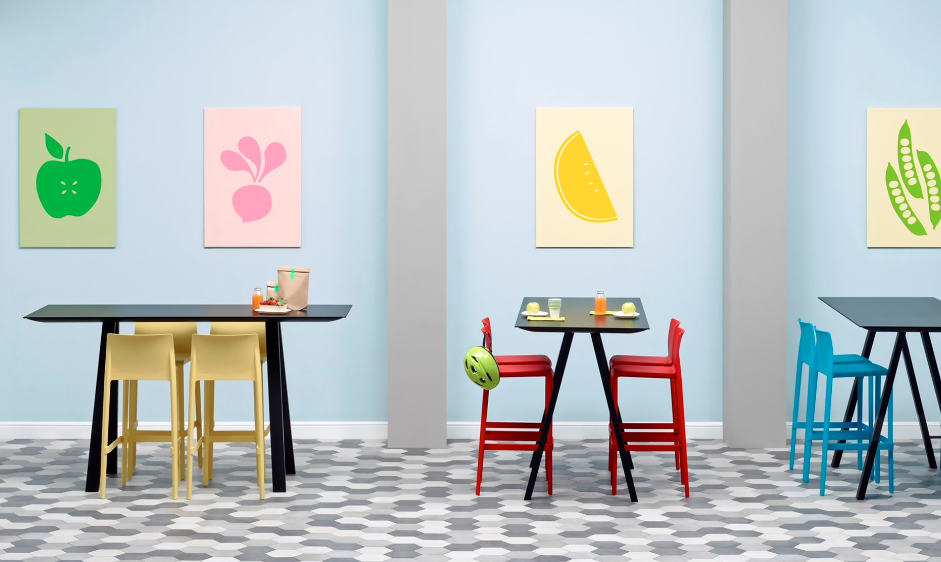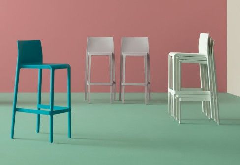 Een stevige barstoel met uitstekende zitcomfort, volledig vervaardigt uit polypropyleen.