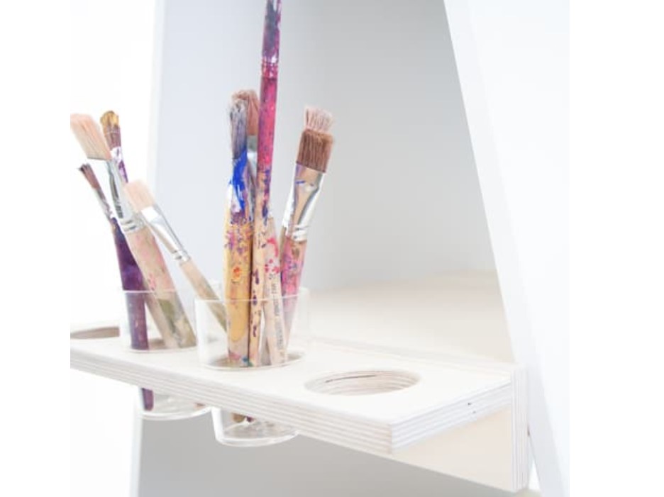 Plankje t.b.v. 4 bekers, 2 legplanken voor het opbergen van de verf en kwasten,