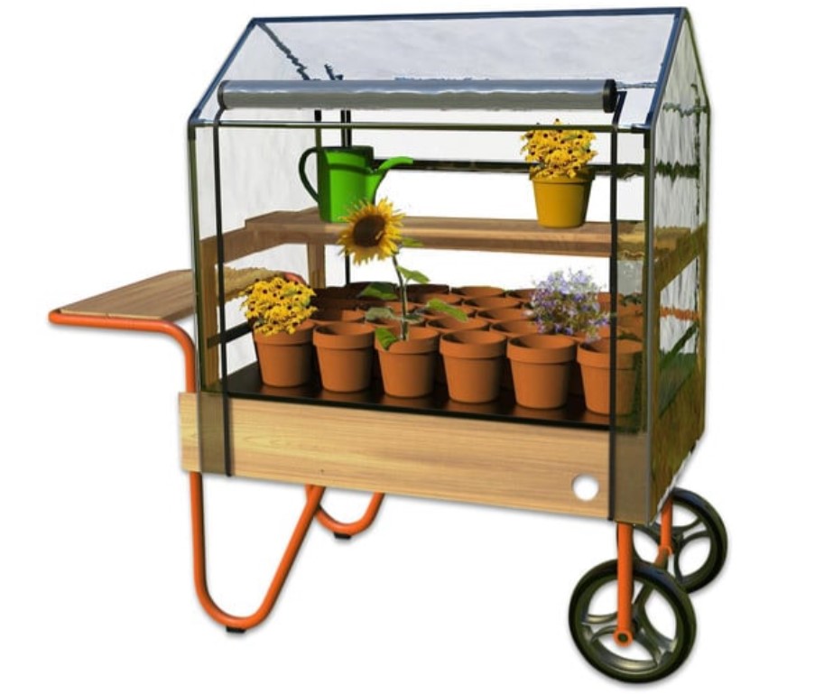 De mobiele kas kan eenvoudig in de zon of schaduw worden gereden.