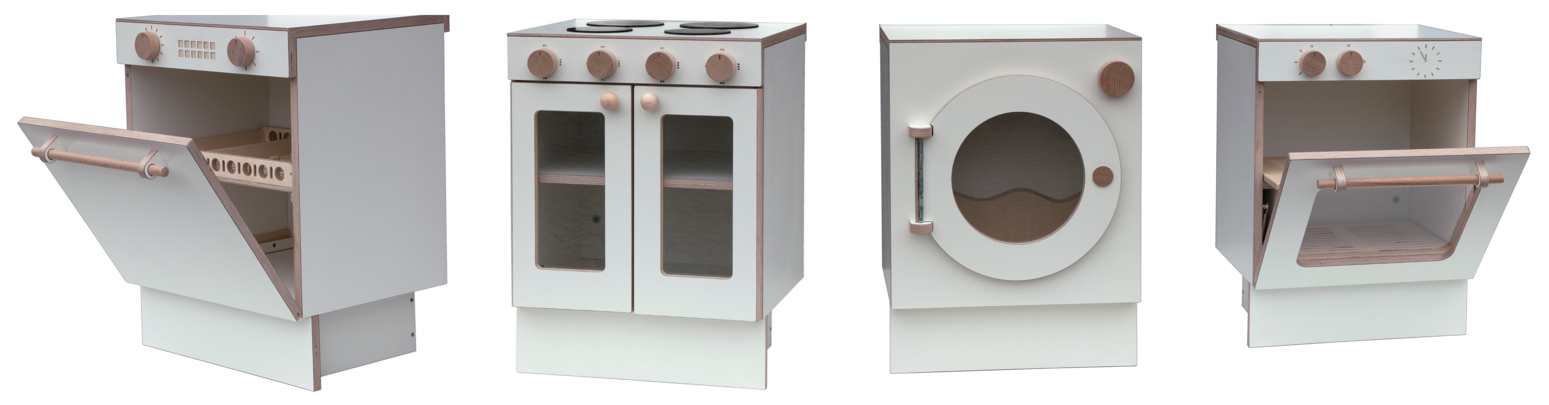 De beuken houten vaatwasrekjes en oven roosters zijn uitneembaar.