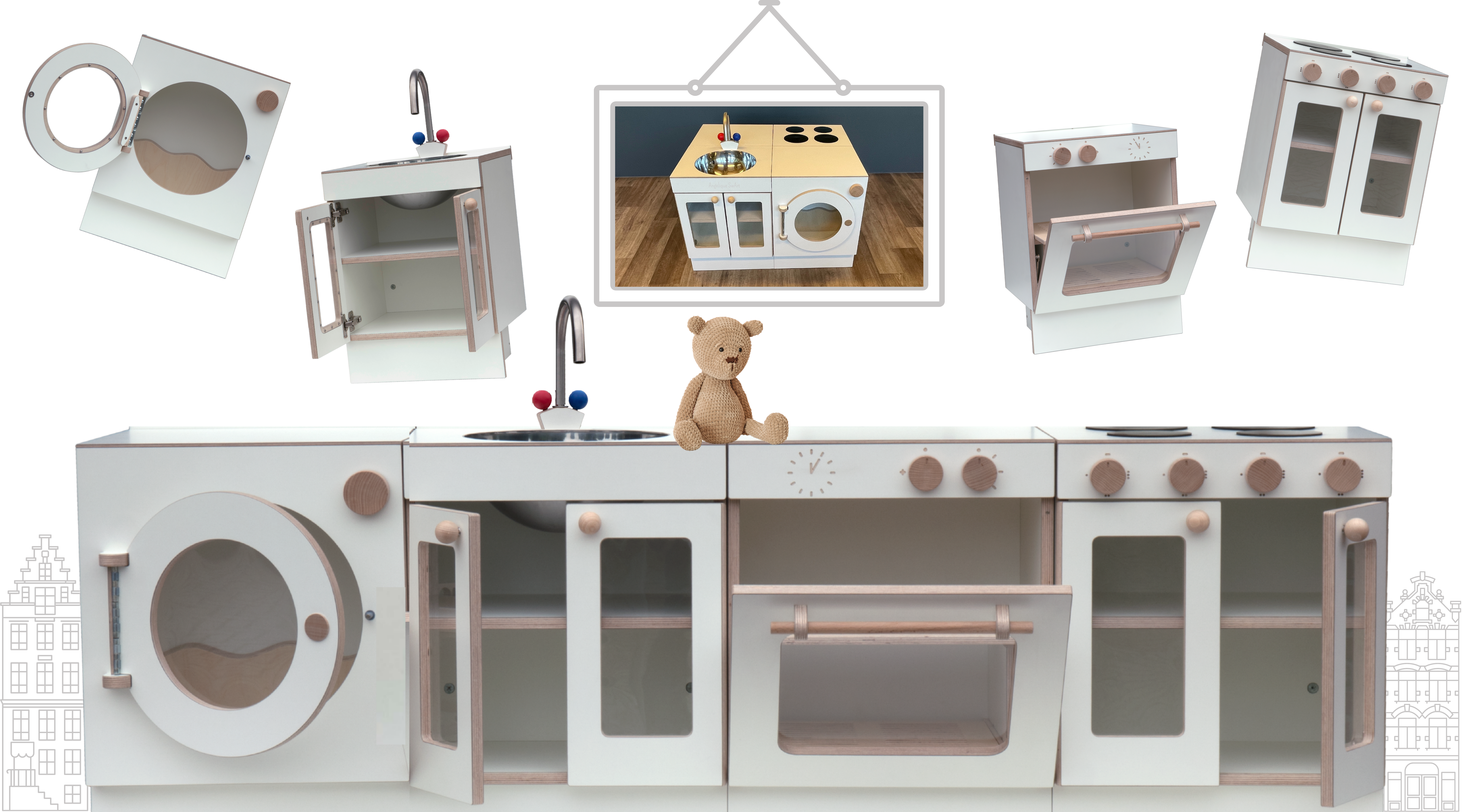 19 open Set met losse keukenblokjes en kind met beerOer Hollandse speelkeukentjes Tangara kinderopvang inrichting5