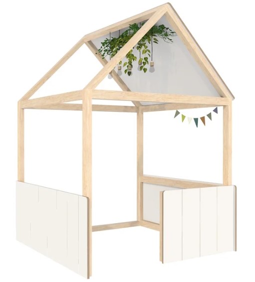 Groot speelhuis waar je bijvoorbeeld een kinderkeuken of laagzitmeubilair in kunt zetten,