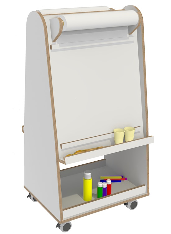 elkaar de mooiste creaties kan maken. Onderin kan je verfpotten en tekenmateriaal kwijt.