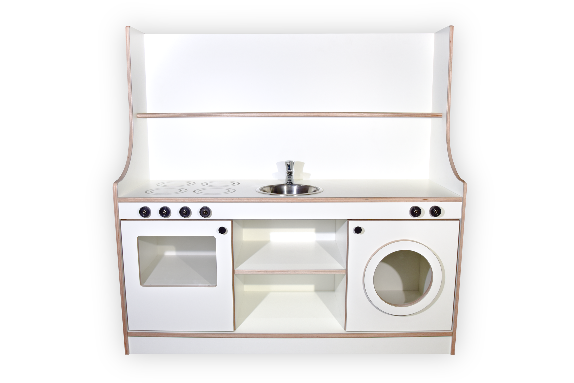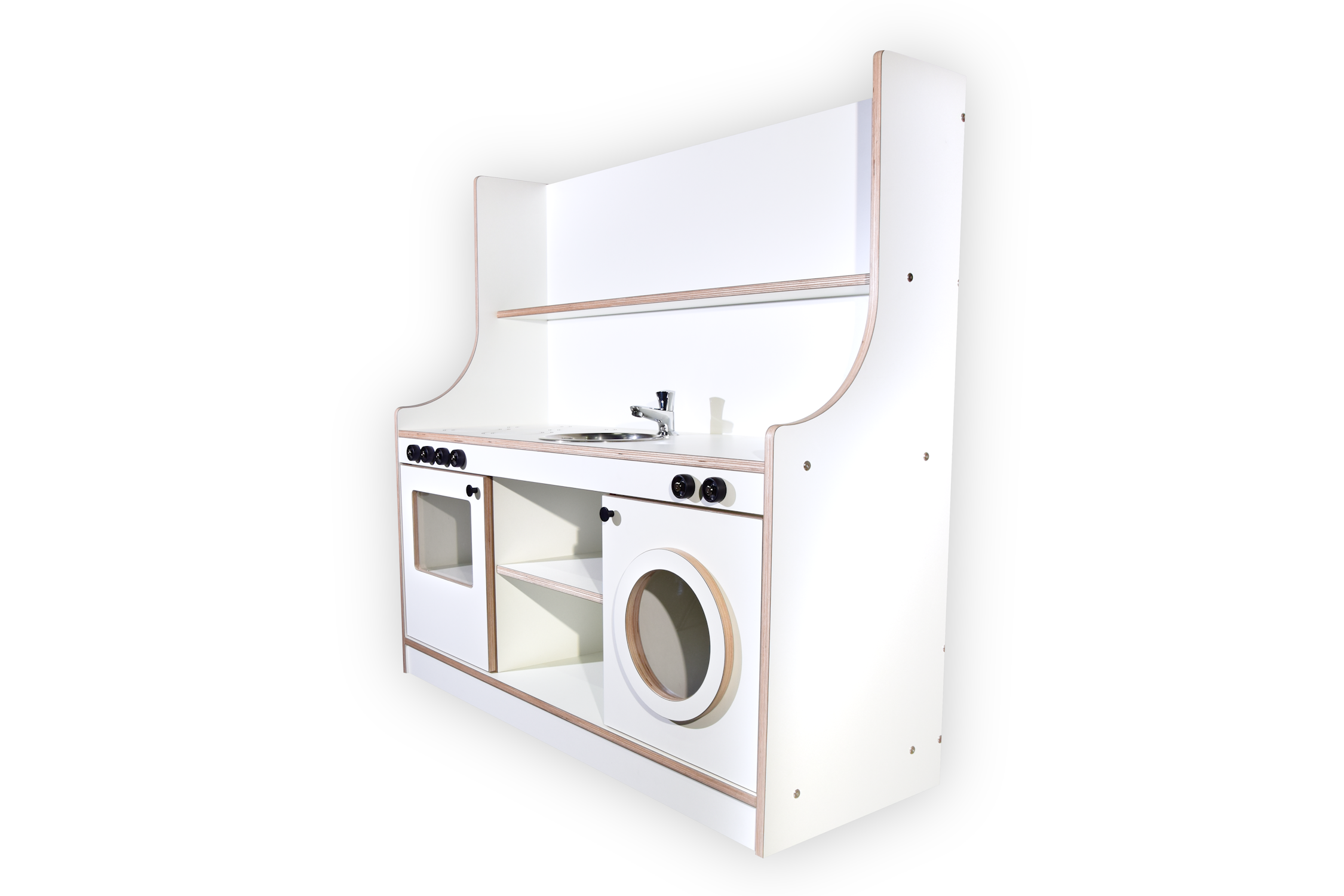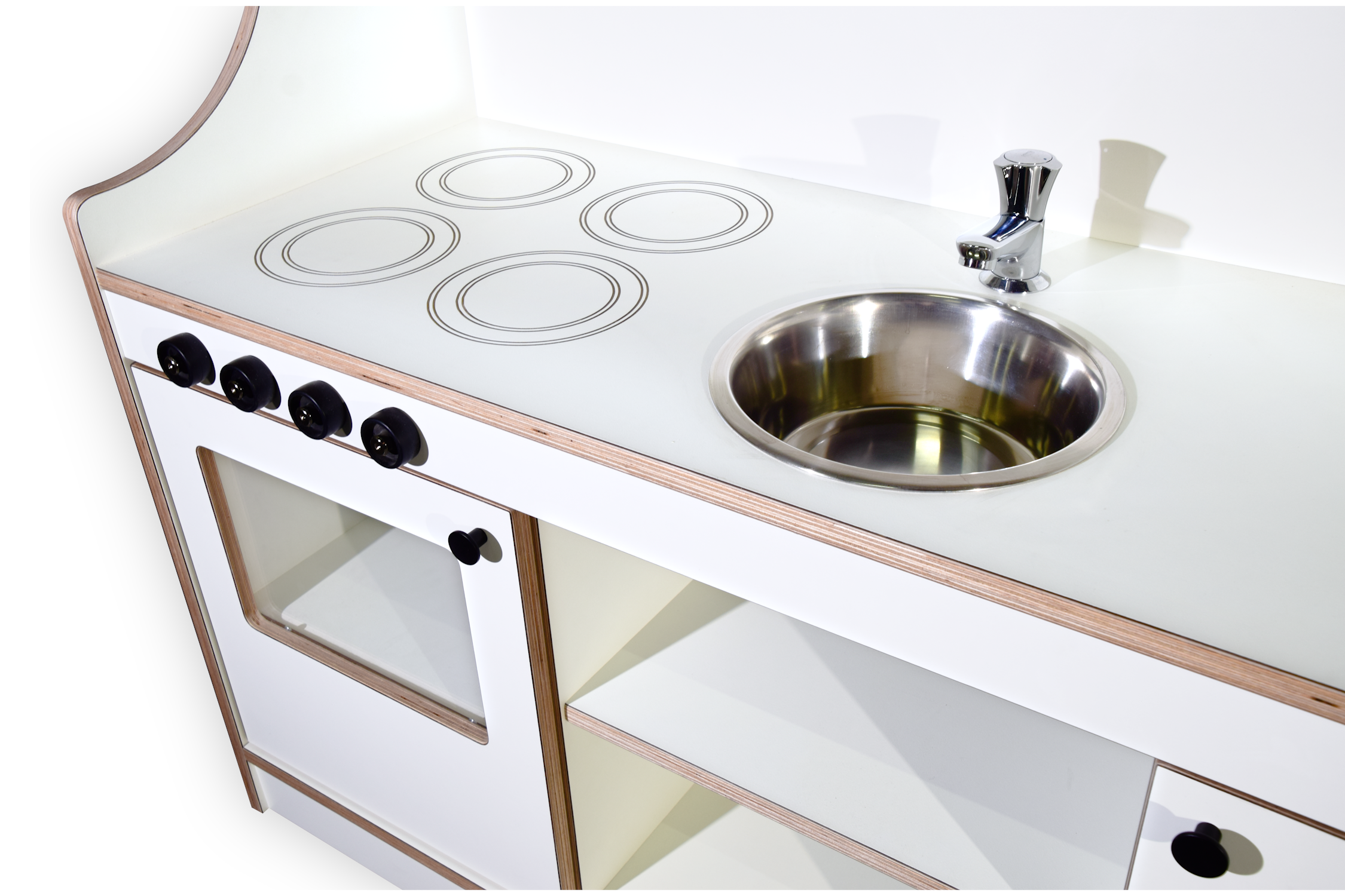De speelkeuken is uitgevoerd in 15mm berken multiplex