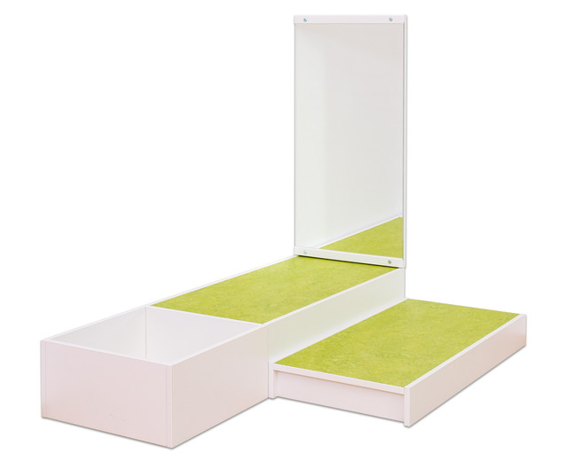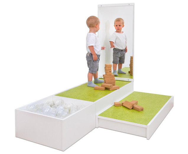 | Speelplatform/Podium set Jakob Avonturenlandschap met educatieve meerwaarde met duurzaam linoleum voor kinderen van 0-3 jaar inclusief muurspiegel Het ideale podiumlandschap voor kinderen van 0-3 jaar De Set Jakob werd samengesteld op basis van de behoeften van kinderen van 0-3 jaar. De kleine platforms kunnen eenvoudig op zichzelf worden geklommen en verlaten. De vriendelijke kleuren en de spiegel van veiligheidsglas veranderen elke kamer in een prachtige kamer om te knuffelen en te ontdekken. Veelzijdig Dankzij de interessante samenstelling van het voetstuk voelen de zeer kleine ontdekkingsreizigers zich heel goed. In de muurspiegel kijken ze met belangstelling naar hun eigen spiegelbeeld. In het kleine voetstuk kunt u een klein ballenbadje of een bad met handdoeken of gedroogde bonen enz maken. Alle zintuigen van de kinderen worden aangesproken en ze leren kleuren en vormen op een speelse manier kennen. De rechthoeken zijn voorzien van bijzonder onderhoudsvriendelijke linoleumvloeren. Vooral veilig - zonder gecompliceerd schroeven Omdat veiligheid erg belangrijk voor ons is, hebben alle platforms een anti-slip rand. Zonder beugels of schroeven zijn de voetstukken zo veilig en kunnen ze zonder extra moeite worden vervangen. Volgens jouw ideeën De sokkel Jakob wordt geleverd in de afgebeelde kleuren en kan variabel worden aangepast. Uiteraard kunt u deze set op elk gewenst moment aanvullen met de individuele sokkelelementen. belangrijk De voetstukelementen zijn exclusief ontwikkeld voor gebruik door baby- en kleuterkinderen (0-6 jaar). Daarom is het maximale laadvermogen 120 kg per element. materiaal - Wandspiegel: ideaal voor het bevorderen van zelfperceptie. - Linoleum coating: het materiaal is antistatisch, antibacterieel en heeft een laag geluidsniveau. Het kan gemakkelijk worden afgeveegd en desinfecteren naar believen. Deze topping is gemaakt van natuurlijke, hernieuwbare bronnen. levering 1x kleine sokkel - rechthoek, decor wit, 24 cm, linoleumkalk, (hxbxd) 24x100x50 cm 1x kleine sokkel - rechthoek, decor wit, 12 cm, linoleumkalk, (hxbxd) 12x100x50 cm 1x kleine sokkel - vierkant om te vullen, decor wit, 24 cm, (hxbxd) 24x50x50 cm 1x wandspiegel voor kleine sokkel, decor wit, (hxbxd) 100x50x3,1 cm. |