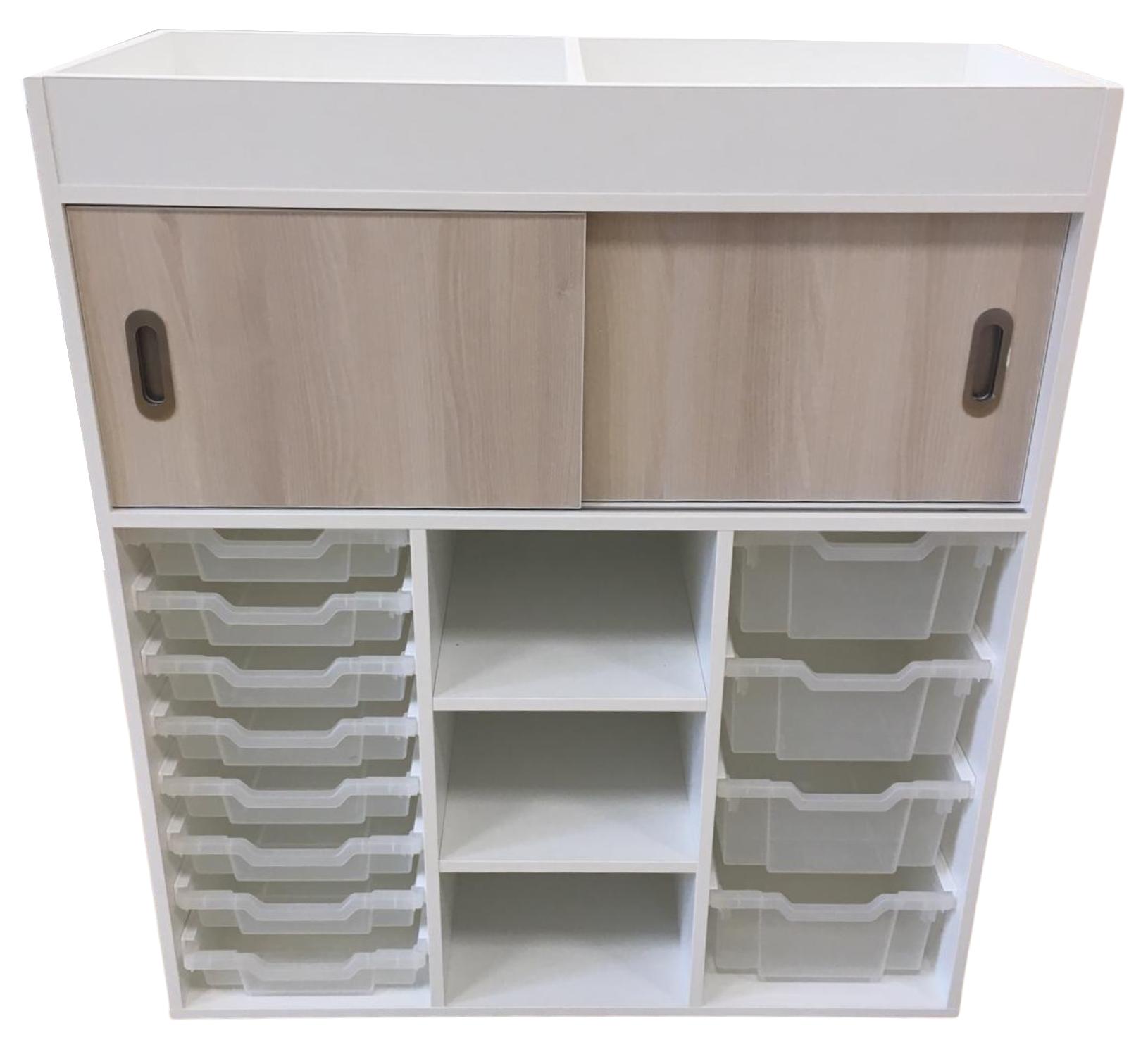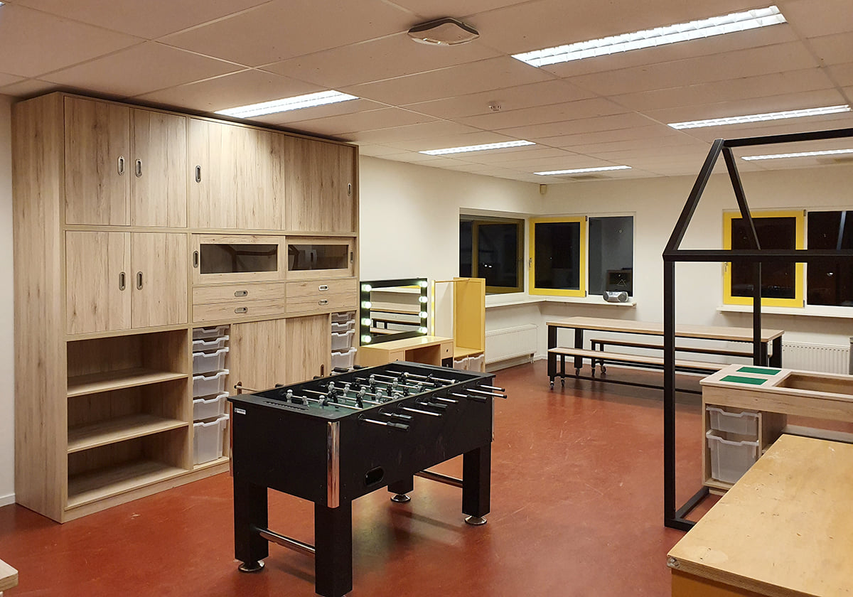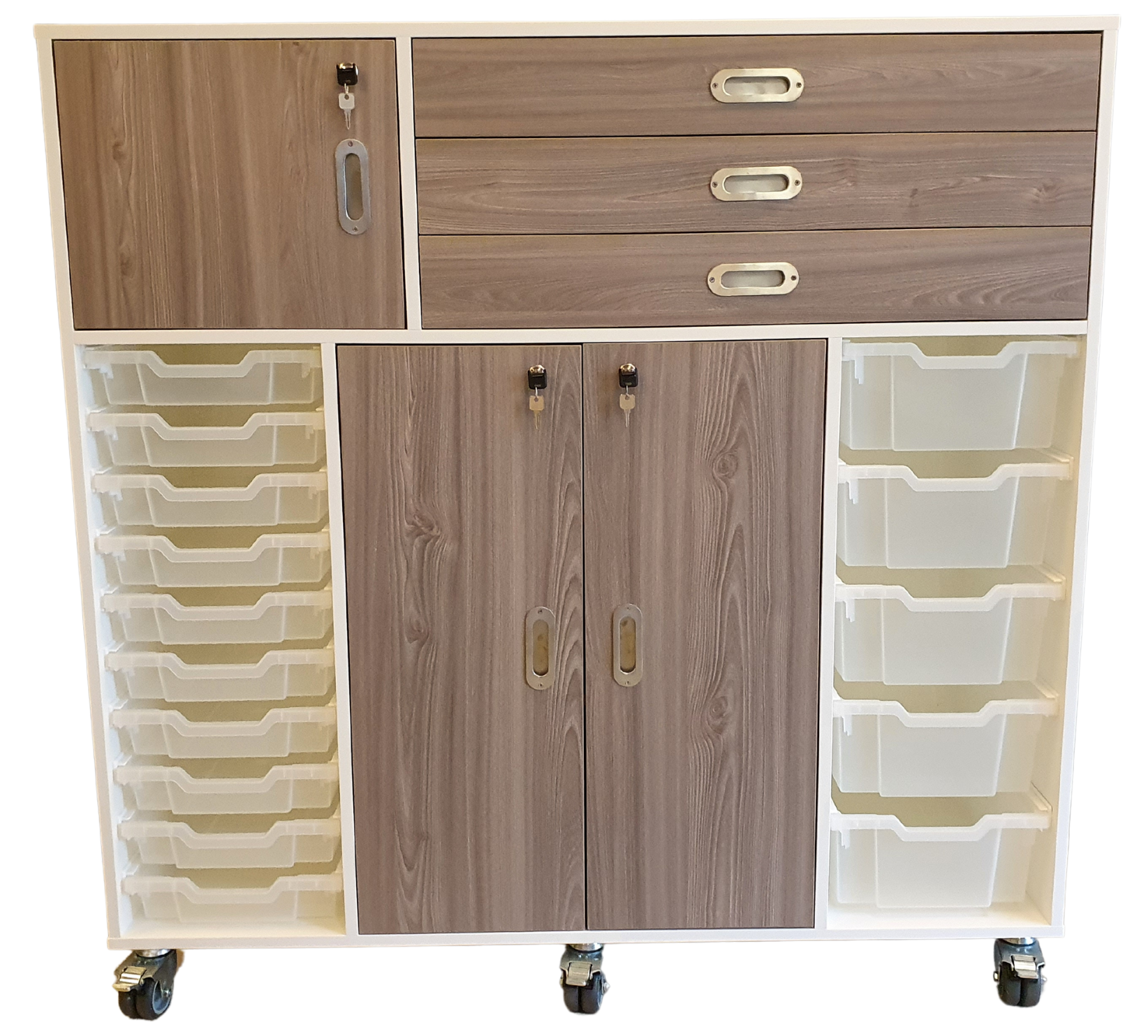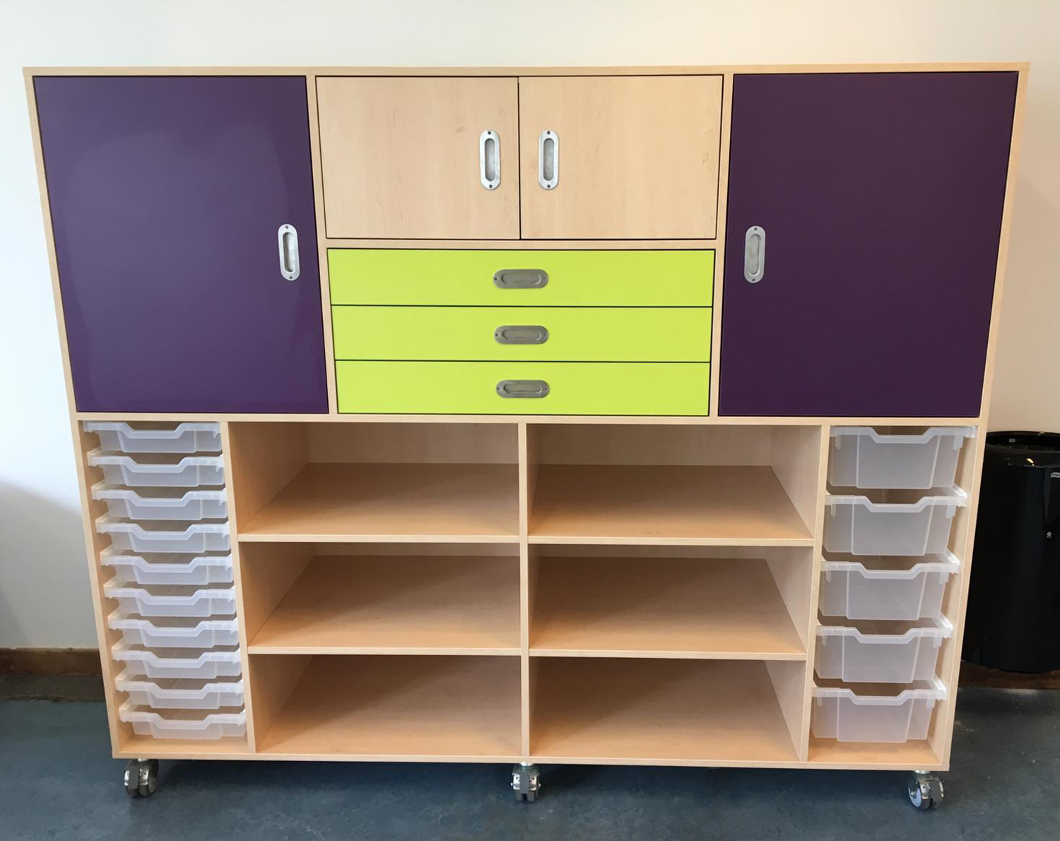 Combineer open vakken, deurtjes en laden tot een functionele atelierkast.
