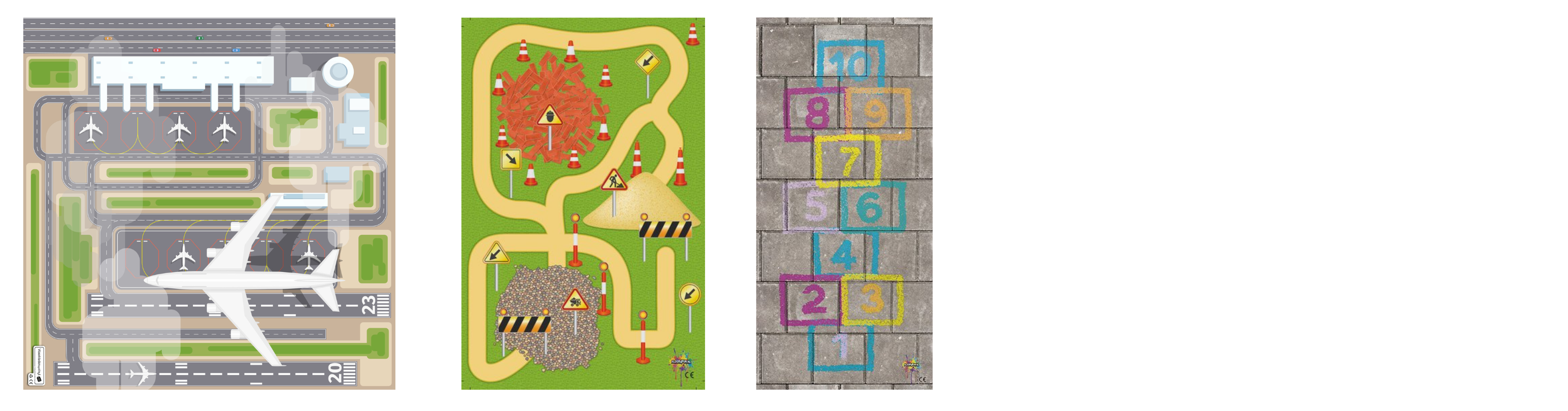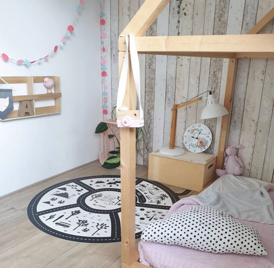 Dit vinyl vloerkleed in vrolijke print is ook geschikt als speelkleed.