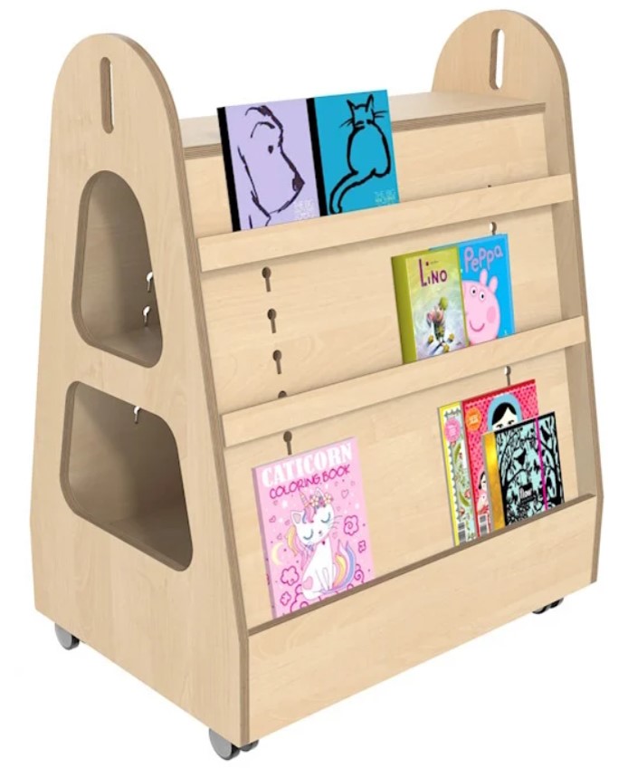 Lees wagen die aan 2 kanten te gebruiken is voor de presentatie van boeken.