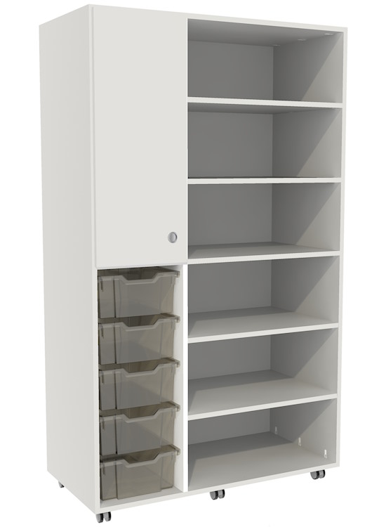 Hoge verrijdbare flex-kast met rechtsbovenin een deur,
