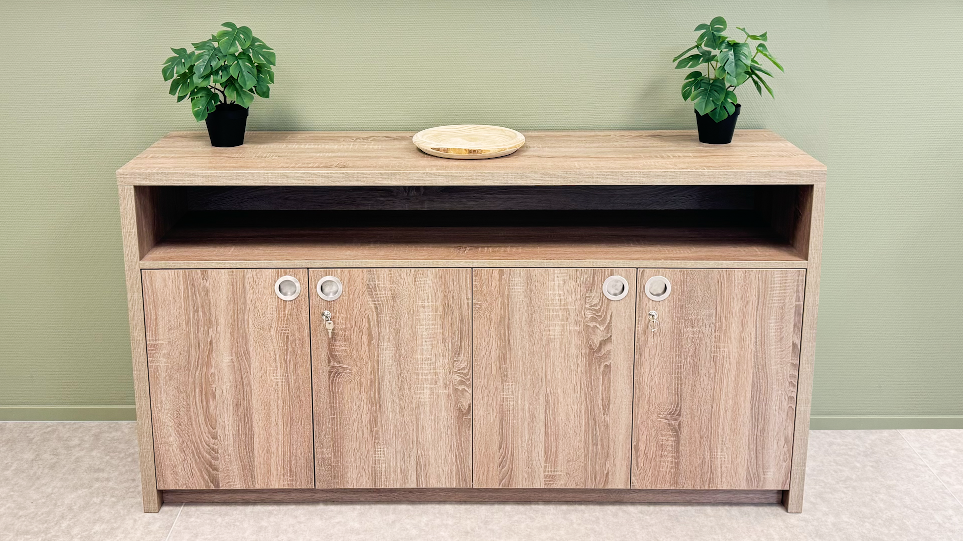 Uitgevoerd in berken multiplex met HPL toplaag in een houtdecor naar keuze,