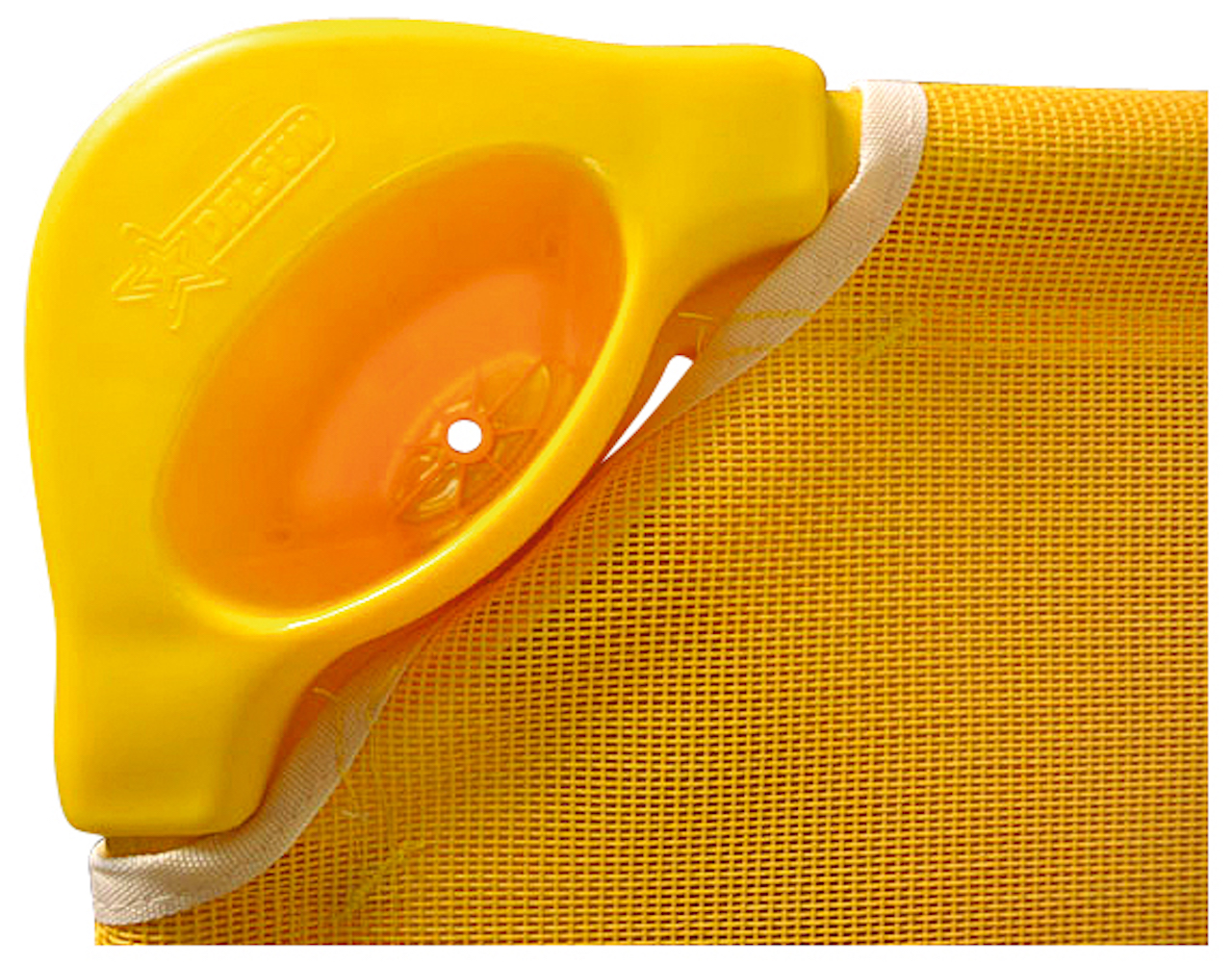 Rustbedje met een stalen frame en ademende stof zijn perfect voor een middagslaapje.