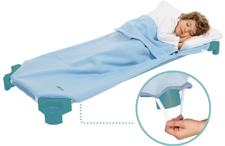 Te bevestigen met elastieken rond de poten van het rustbedje.