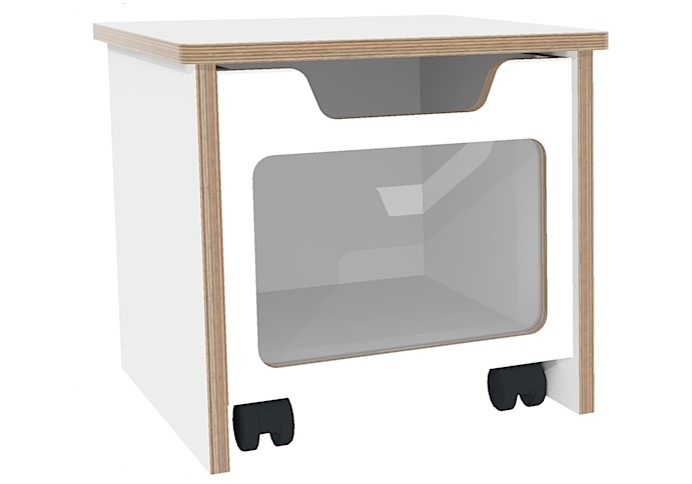 De bakken zijn voorzien van plexiglas fronten zodat je kunt zien wat er in zit.