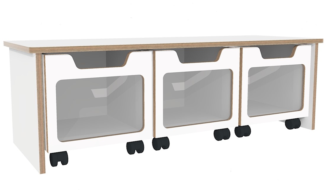 Opbergbank 3 rolbakken B120 Wit