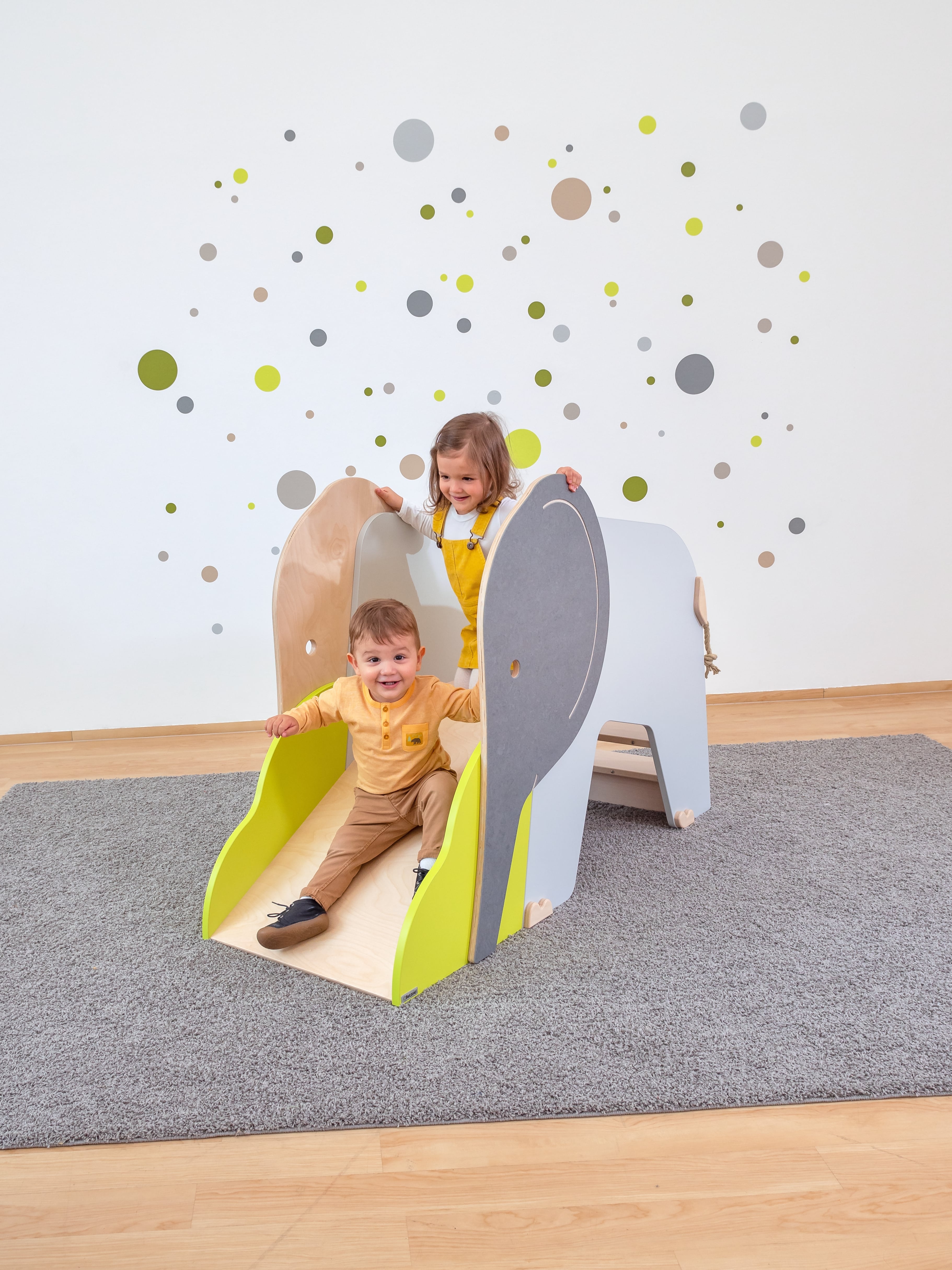 Het Olifantje van EduCasa is een vrolijke Speelburcht met glijbaan, trappetje en kruipruimte.