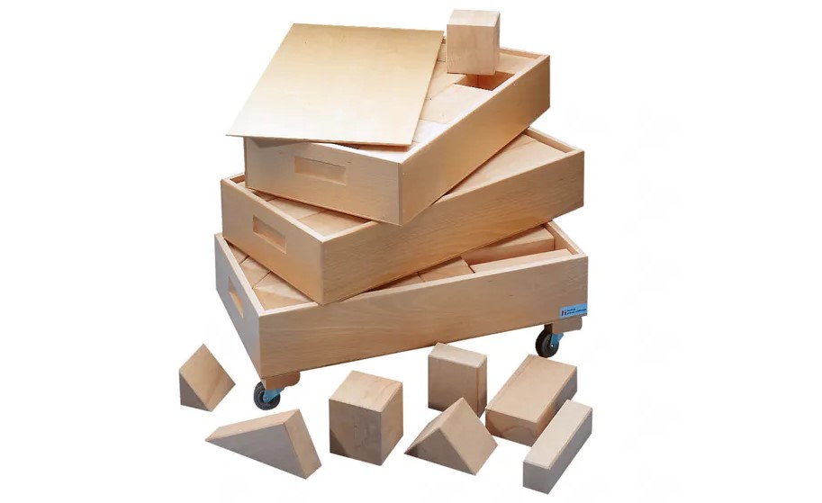 3 Kisten bestaande uit 80 beukenhouten blokken met als basismaat 10 x 10 cm. |