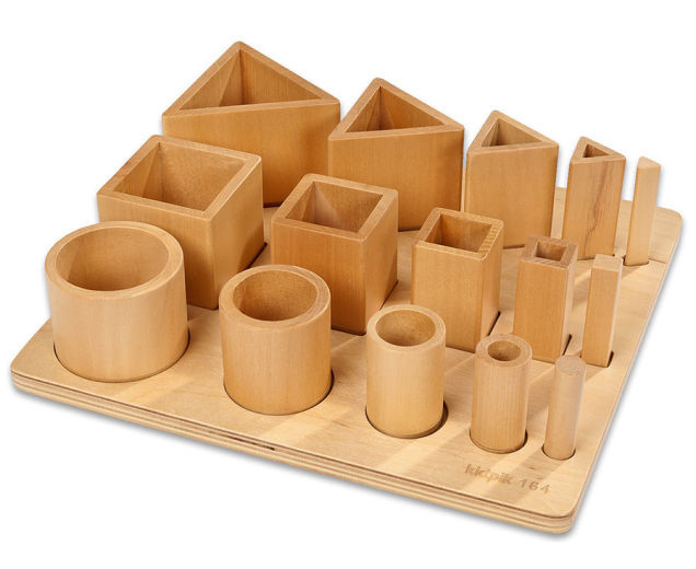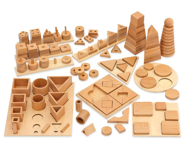 | Zintuiglijk materiaal, montessorie 12 verschillende 'plug-in' spellen 1-werkingsprincipe Objectbestendigheid en vormbestendigheid Vormen, maten, hoogten en hoeveelheden vastleggen en toewijzen In de eerste twee jaar verwerven baby's verschillende sensomotorische mogelijkheden. Ze leren door te herhalen, te proberen en aan te raken. Het materiaal (beukenhout) maakt indruk met het "1-functieprincipe": er is geen afleiding door kleur, kleurrijke indrukken of geluid. Het concentratievermogen wordt geëist en opgebouwd door een activiteit uit te voeren. Concentratie op de essentie Het feit dat het materiaal zichzelf terugtrekt in vorm en kleur, overweldigt het kind dat het speelt niet. Door de onafhankelijke actie en het zelfcontrolerende systeem kunnen de kinderen begrijpen wat ze hebben geleerd en begrijpen. Zo zullen uw kinderen hun eerste ervaringen hebben, Objectbestendigheid en vormbestendigheid. Materiaal: beuken Afmetingen: plaatsingsvormen - cirkel: Ø pad 22,3 cm, cirkels: Ø 4,9 - 8,9 cm - vierkant : pad 22,2 cm, vierkanten: 4,7 - 8,5 cm - driehoek: Zijlengte 22,2 cm. Driehoeken: zijkant lengte 8,7 cm Plug-in spelvormen - pad 30,3 cm, breedte 6,8 cm - cirkel: Ø 4,9 cm - rechthoek: 4,8 cm, breedte 3 cm Plug vierkant : pad 30,3 cm, breedte 6,8 cm; Vierkant: 5 cm Driehoekinzet : kussen 33,5 cm, breedte 6,8 cm; Driehoek: hoogte 5 cm, steeklengte 5,7 cm insteekcirkel: Pad 30,3 cm, breedte 6,8 cm, cirkel: Ø 4,9 cm plugspeelvormen - pad 36,7 x 31,5 cm - vierkant: grootste 8,2 cm, hoogte 5,5 cm - driehoek: grootste Lengte 12,1 cm, hoogte 10,2 cm, diepte 5,5 cm - cirkel: grootste Ø 8 cm puzzelvormen - basis 22,5 cm - driehoeken: 10 x 14 cm - vierkant 4,9 x 4,9 cm - Cirkel: Ø 5 cm Stapelspel cirkel Totale hoogte : 21,8 cm Stapelspel driehoek Totale hoogte : 23 cm Stapelspel Vierkant Totale hoogte : 22,3 cm Gegevens & feiten te gebruiken: Leeftijd vanaf:1 jaar textuur: Primair materiaal:hout Afmetingen / gewicht: Totaal gewicht:9 kg |