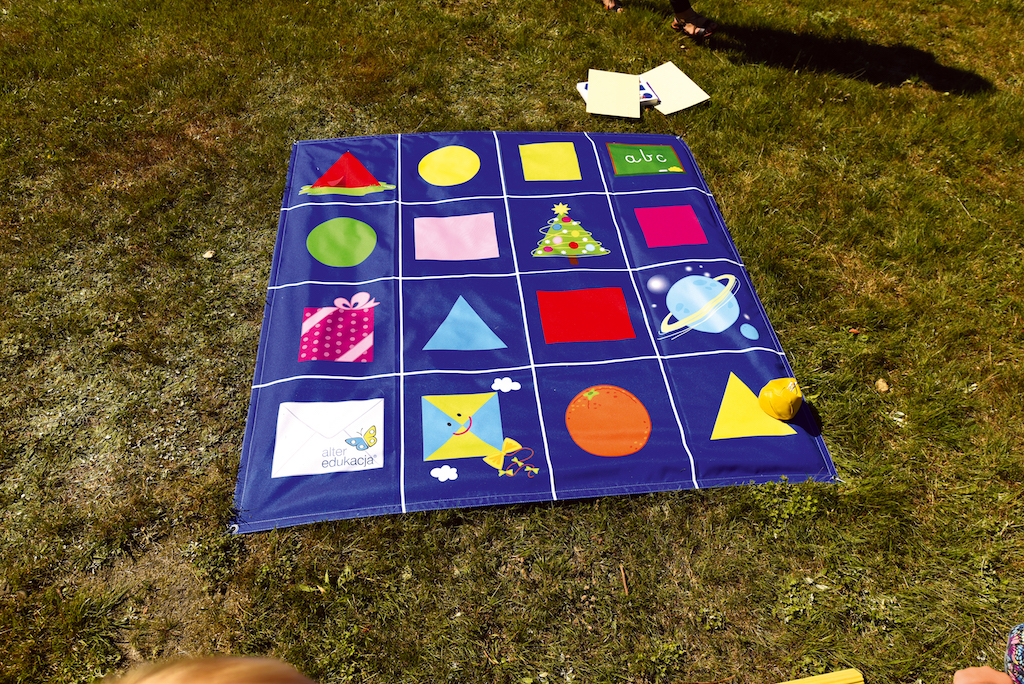 Dankzij de stalen pinnen die bij de set worden geleverd en de speciale gaten in het kleed, kan het stevig aan de grond worden bevestigd, bijvoorbeeld op het gras.