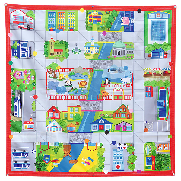 Het vloerspel is gemaakt van stevige stof, die gewassen kan worden een wasmachine (laagste termperatuur / geen kookwas / geen centrifuge.